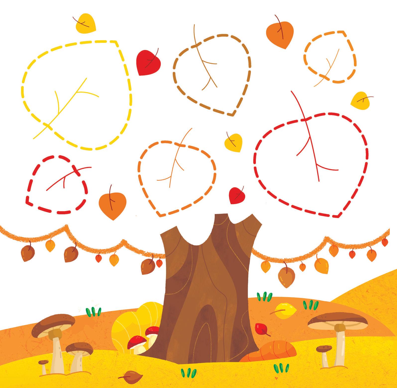 COSA FANNO LE FOGLIE DI ALCUNI ALBERI IN AUTUNNO? COMPLETA I GRAFISMI USANDO I COLORI INDICATI. Obiettivo: Riconoscere aspetti tipici dell’autunno. Esercitare la grafomotricità.