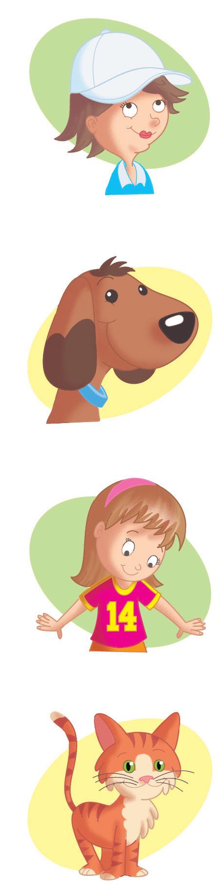 MY HAIR is BROWN AND LONG. my skirt is pink and blue. my cat has got green eyes.