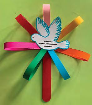 Materiale occorrente: colla, forbici, cartoncini colorati, tempere e pennello, pennarelli, immagini di una colomba e del globo terrestre, stecche di legno.