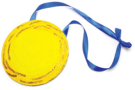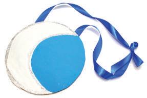 Prepariamo, da indossare come collana, un cerchio su cui sono disegnati un sole sul fronte e una luna sul retro. Un bambino la indosserà per interpretare il Sole e la Luna.