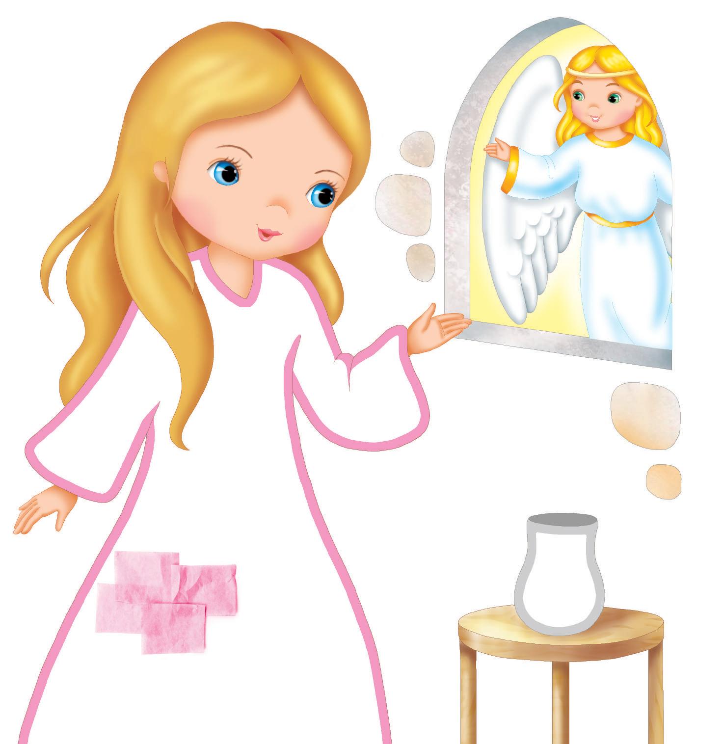 ASCOLTA IL RACCONTO. COSA DISSE L’ARCANGELO GABRIELE A MARIA? INCOLLA TANTI PEZZETTI DI CARTA VELINA SUL SUO ABITO. COLORA.