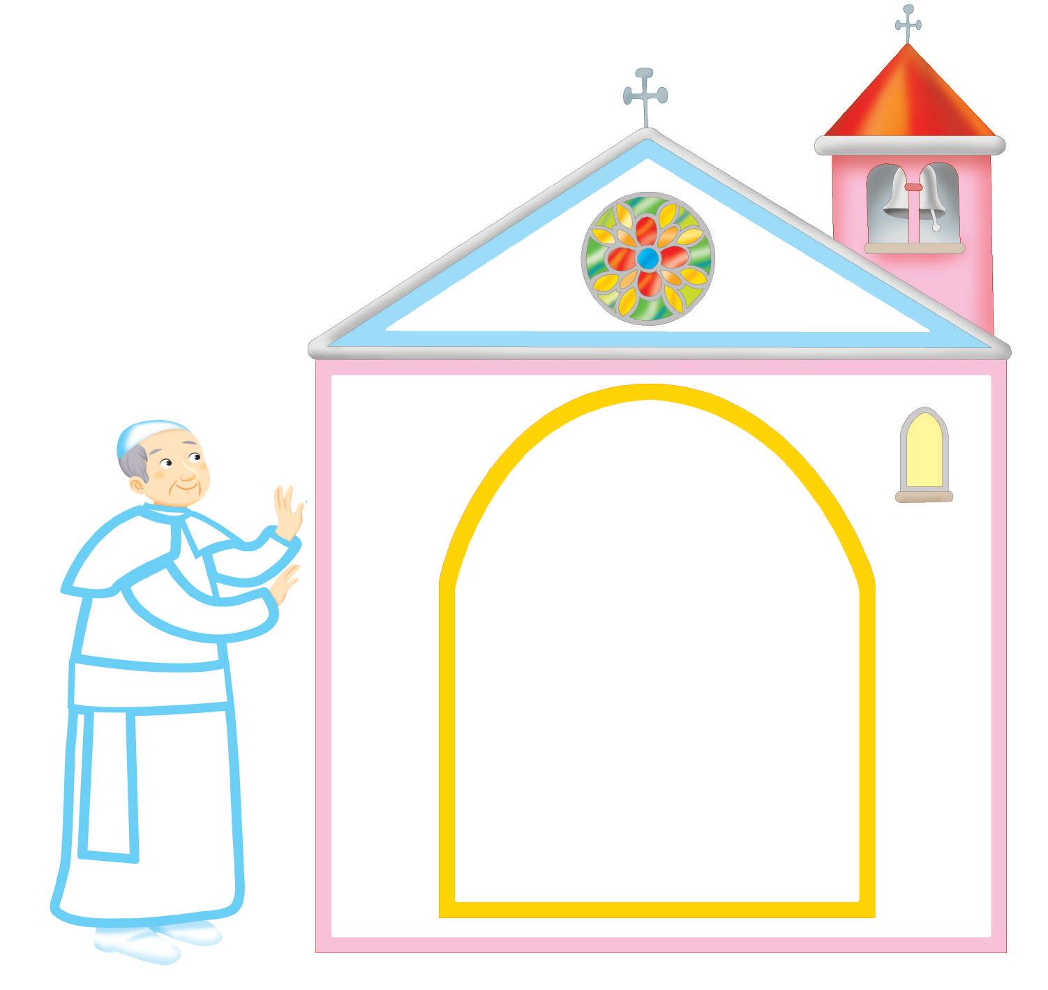 DISEGNATI CON I TUOI AMICI NELLA PORTA DELLA CHIESA. RICORDI COME SI CHIAMA IL NOSTRO PAPA? COLORA.