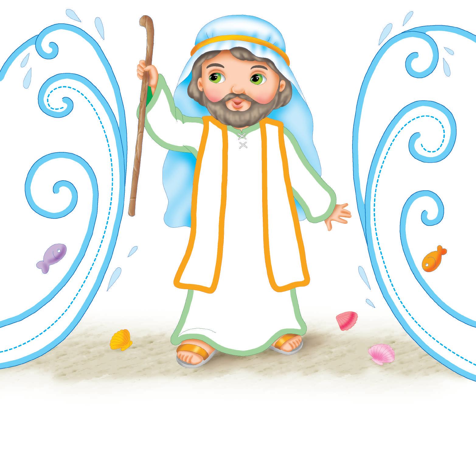 ASCOLTA LA STORIA DI MOSÈ. RIPASSA I TRATTEGGI DELLE ACQUE CHE SI DIVIDONO E COLORA.