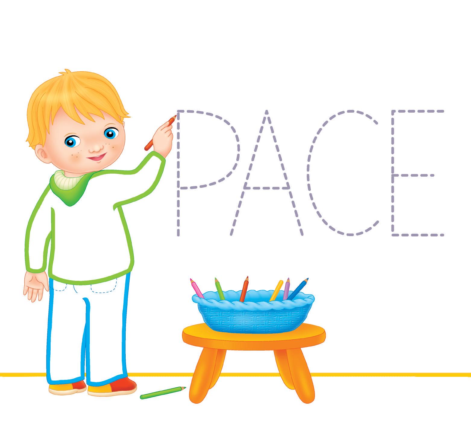 Colora e ripassa la scritta, poi ripetila. Educare al valore della pace. Sviluppare la capacità di prescrittura.