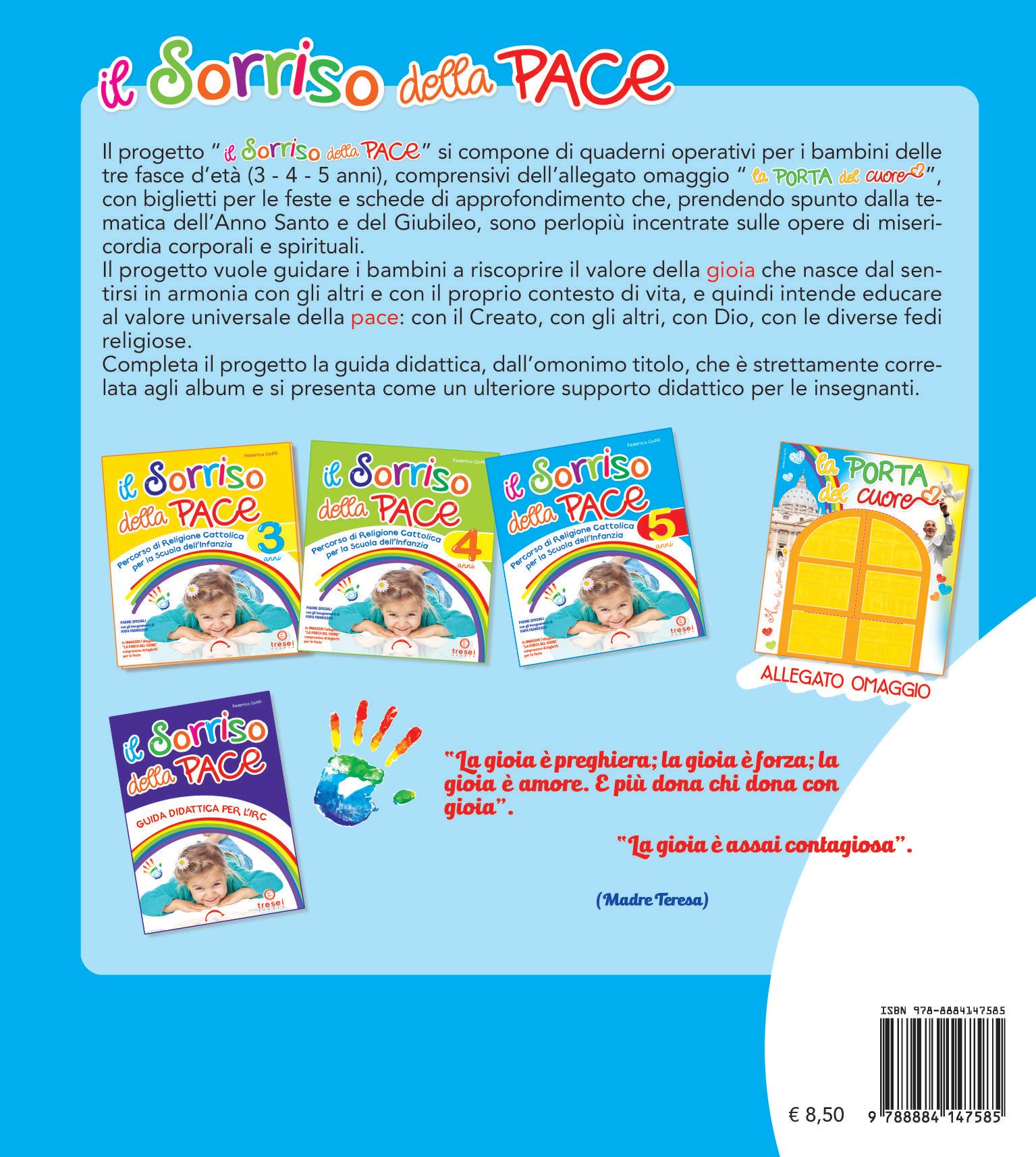 ...In particolare, le pagine dedicate all’OGGI sono contraddistinte dall’icona del sorriso, ovvero: svolgendo le attività proposte in queste schede, incentrate su scene che ritraggono aspetti della quotidianità, i bambini si troveranno a percorrere la “via della pace” che porta inevitabilmente alla scoperta della GIOIA dell’incontro con Gesù e i suoi insegnamenti di AMORE.