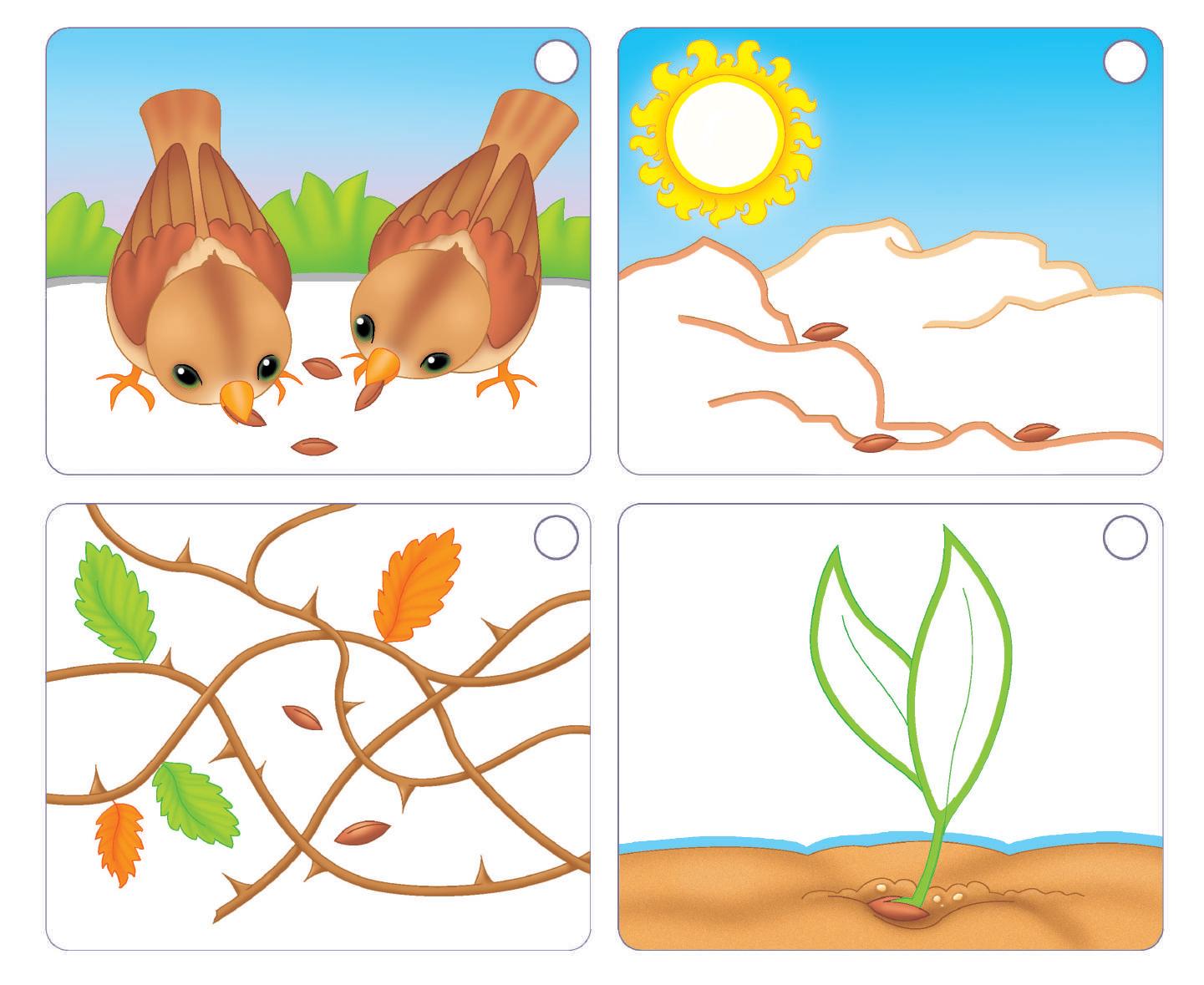 Ascolta dall’insegnante la parabola del seminatore. Colora la scena e il pallino di quella in cui il seme è caduto nel terreno buono e ha dato frutti. Approfondire e comprendere la parabola del seminatore.