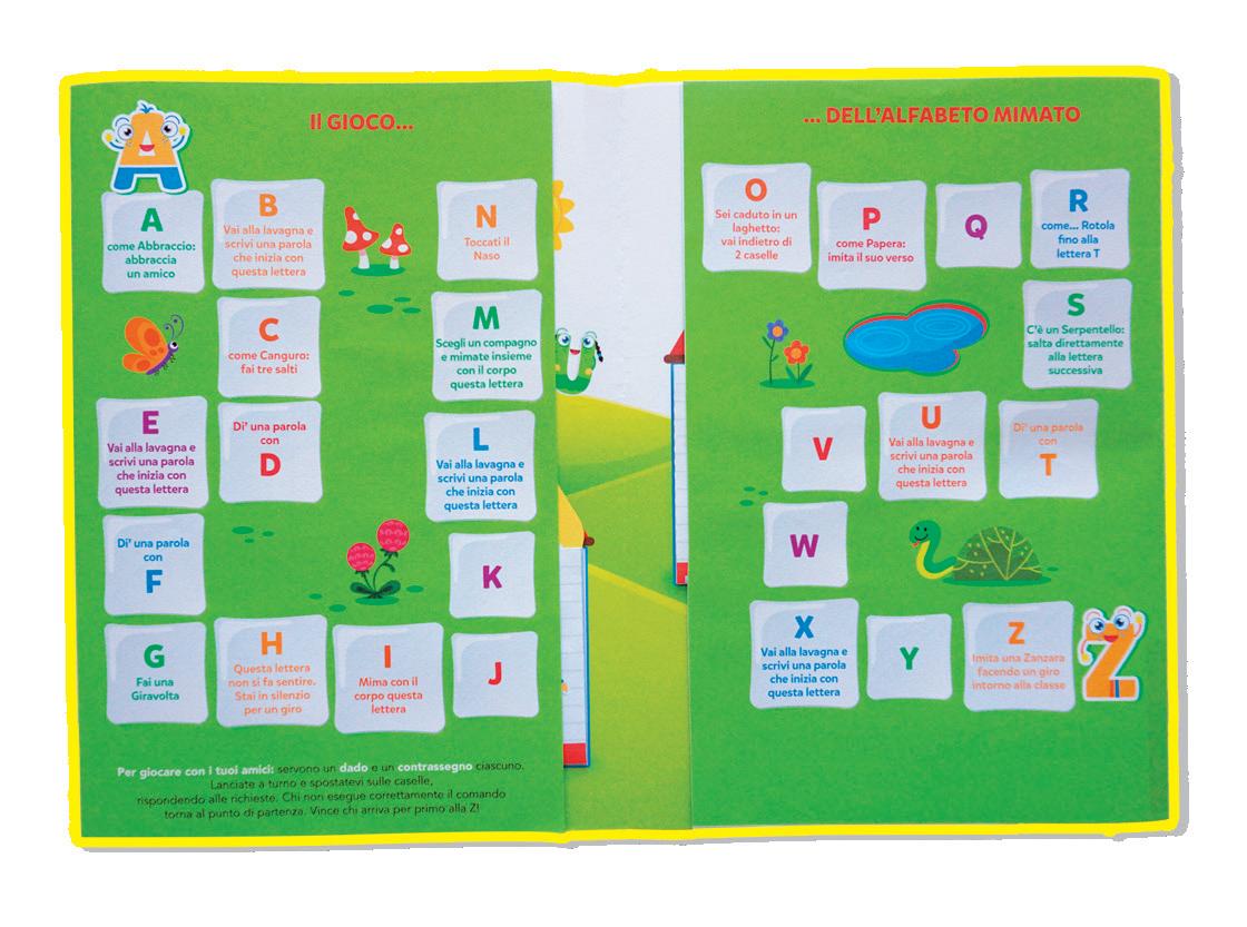La vocale A La vocale E La vocale I La vocale O La vocale U Mi metto alla prova! Riepilogo L come letto M come mucca P come pecora T come tenda N come nave S come sole Mi metto alla prova! Riepilogo F come fiore D come delfino B come bicicletta La lettera R La lettera V La lettera Z Mi metto alla prova! Riepilogo La lettera H Le lettere straniere La lettera C