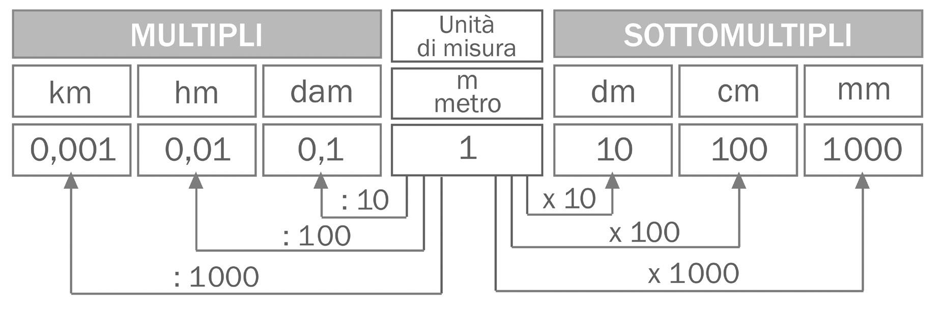 • per passare da un’unità di misura maggiore a quella minore devi moltiplicare per 10, 100, 1000, ecc. Es.: 13 dam = 1300 cm