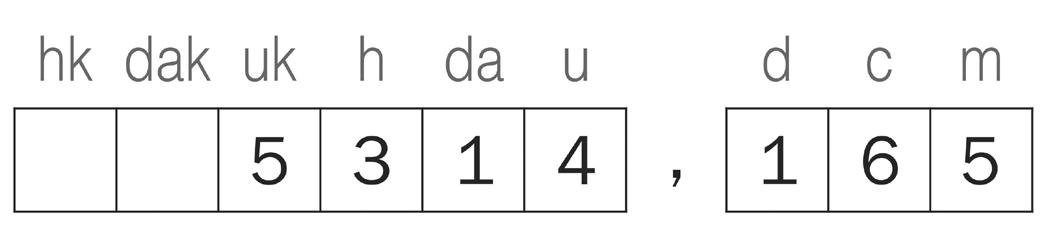 6 m = 60 cm 5 da = 500 30 kg = 3 000 g 40 hm = 4 km 3 = 300 c