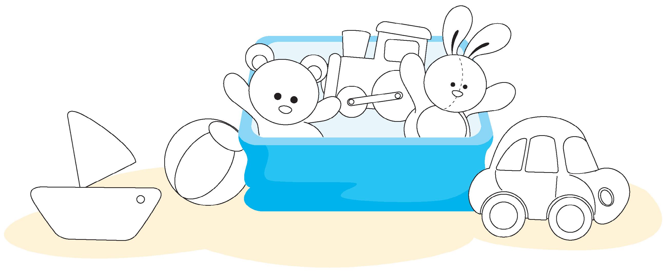 COLORA DI GIALLO TUTTI I GIOCHI DENTRO IL PORTAGIOCHI E DI ARANCIONE QUELLI FUORI.