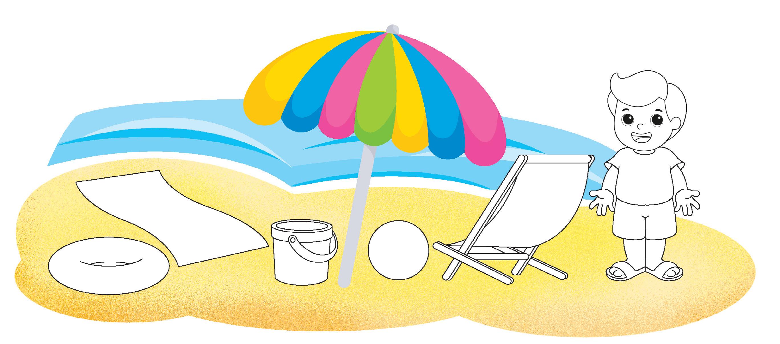 COLORA TUTTO CIÒ CHE, RISPETTO AL TUO PUNTO DI VISTA, STA A SINISTRA DELL’OMBRELLONE.
