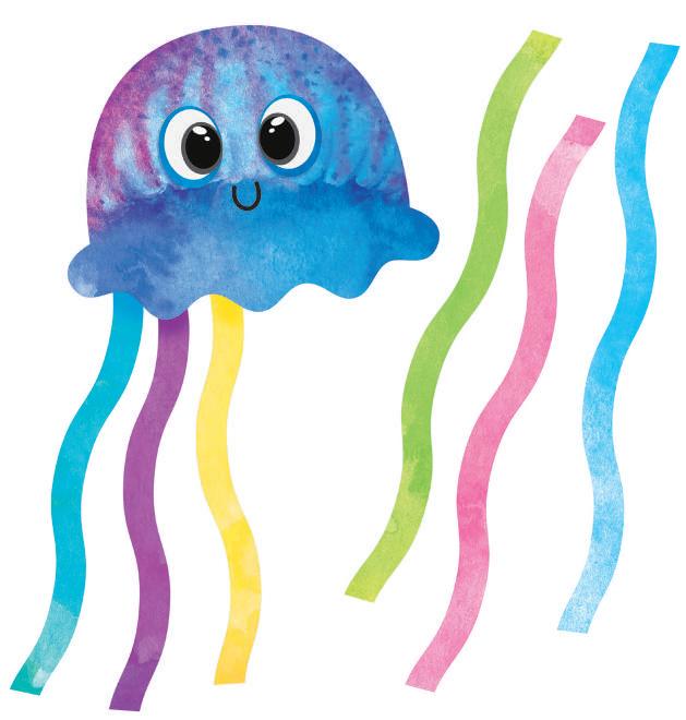 LA MEDUSA MULTICOLORE PAGINA ACCANTO FORBICI COLLA STICK RITAGLIA GLI ELEMENTI DELLA PAGINA ACCANTO. 1 SEGUI LE ISTRUZIONI PRESENTI DIETRO CIASCUN ELEMENTO. INCOLLA QUINDI PER PRIMI GLI OCCHIETTI, POI I TENTACOLI E PER ULTIMO L’ELEMENTO D. LABORATORIO CREATIVO