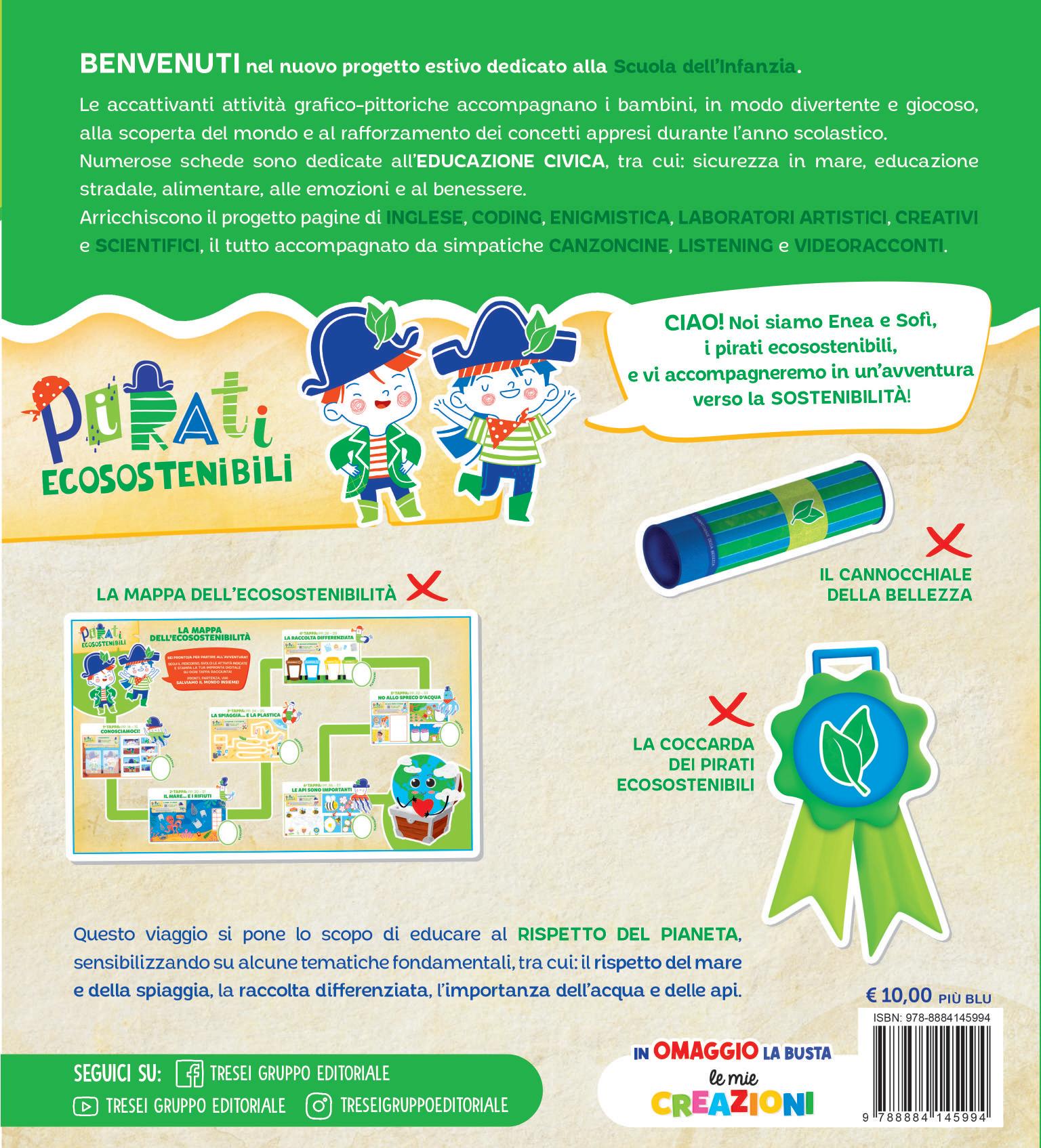 Le accattivanti attività grafico-pittoriche accompagnano i bambini, in modo divertente e giocoso, alla scoperta del mondo e al rafforzamento dei concetti appresi durante l’anno scolastico. Numerose schede sono dedicate all’EDUCAZIONE CIVICA, tra cui: sicurezza in mare, educazione stradale, alimentare, alle emozioni e al benessere. Arricchiscono il progetto pagine di INGLESE, CODING, ENIGMISTICA, LABORATORI ARTISTICI, CREATIVI e SCIENTIFICI, il tutto accompagnato da simpatiche CANZONCINE, LISTENING e VIDEORACCONTI.