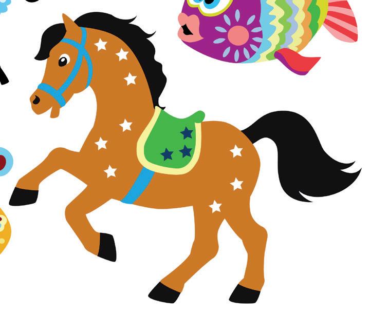 Colora, ripassa e completa. Quanti cavalli ci sono? Disegna nell’insieme tanti tamburi quanti indicati dal numero.