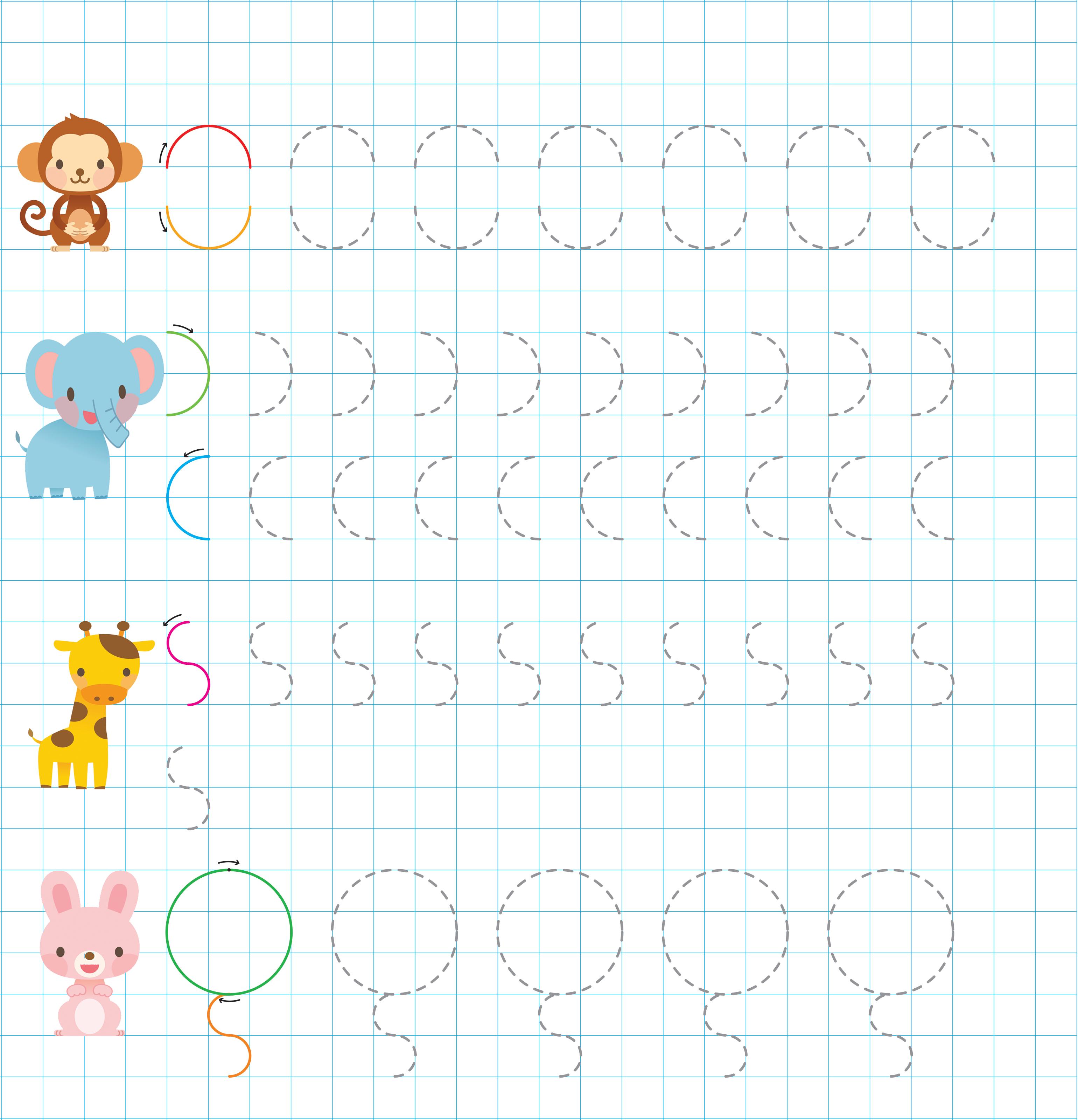 Usando i colori indicati, ripassa e completa. Nomina gli animaletti raffigurati.