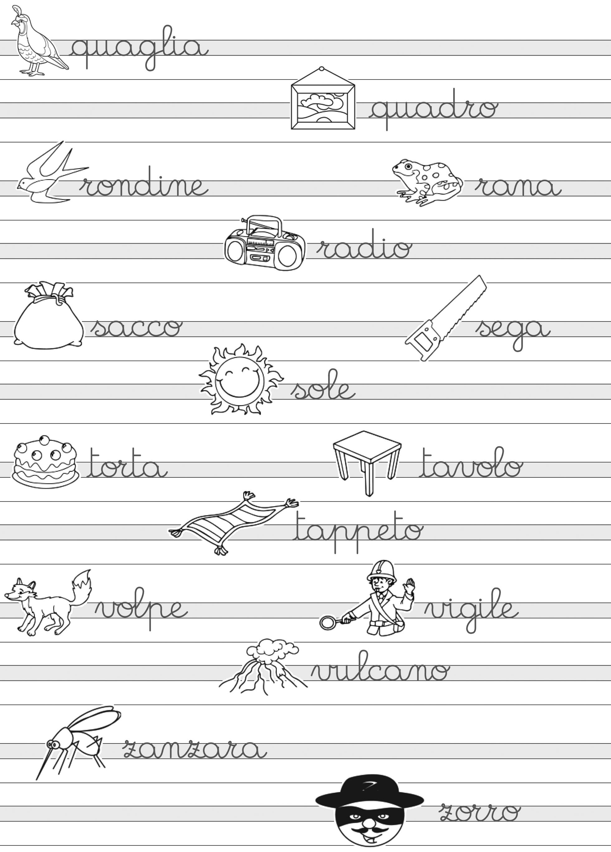 anello • gatto • nonno • topo • bottiglia porta • rondine • maestra • bambina