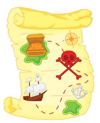 Il pirata Occhiblu tira fuori una mappa del tesoro e dà l’ordine di seguire la rotta che vi è indicata.