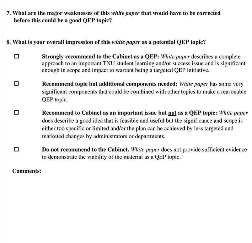 • Students have the critical thinking skills and commitment to learning which will foster a lifetime of intellectual growth; (QEP SSO3)