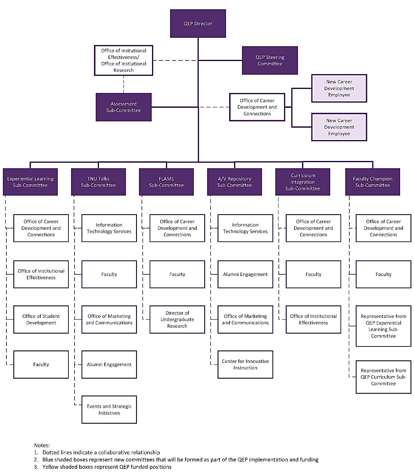 QEP topic selection, implementation, and development teams included representatives from faculty, staff, and students.