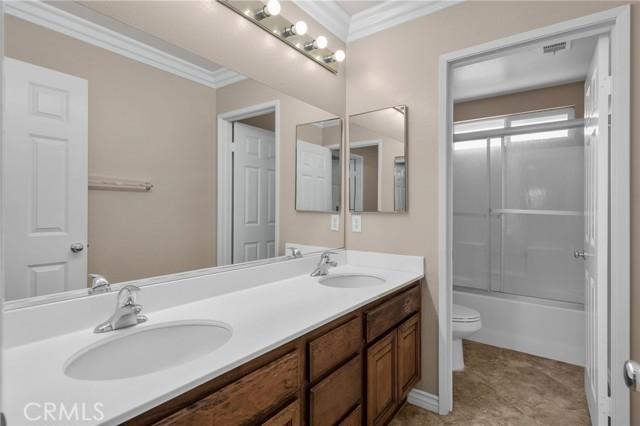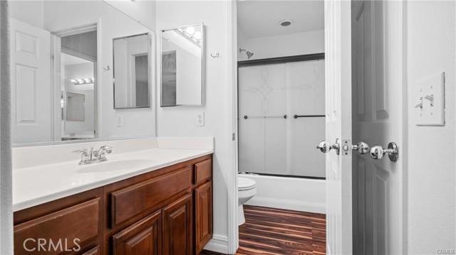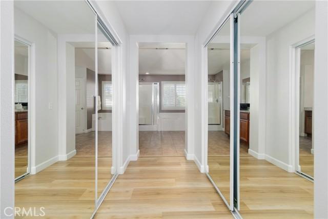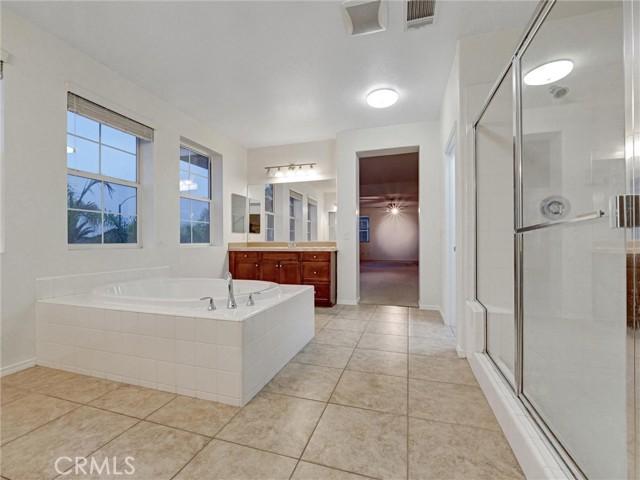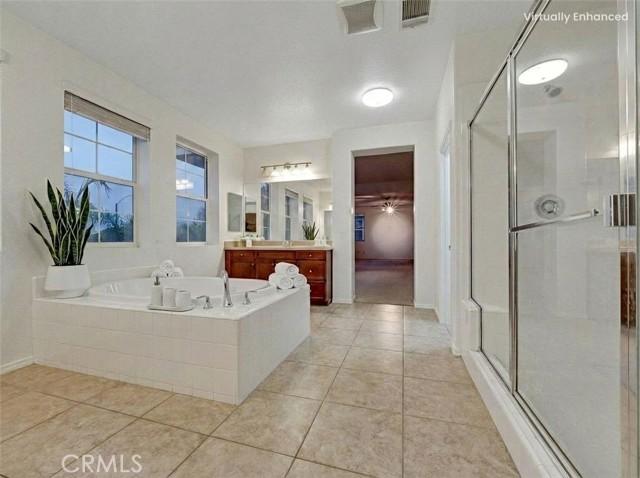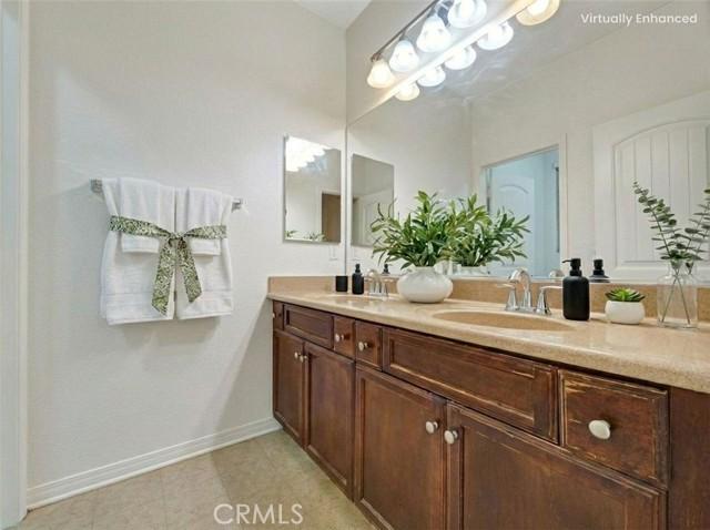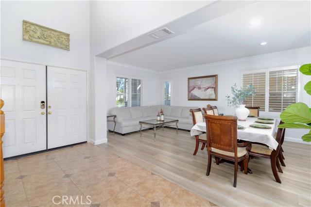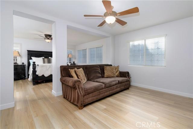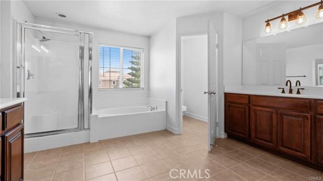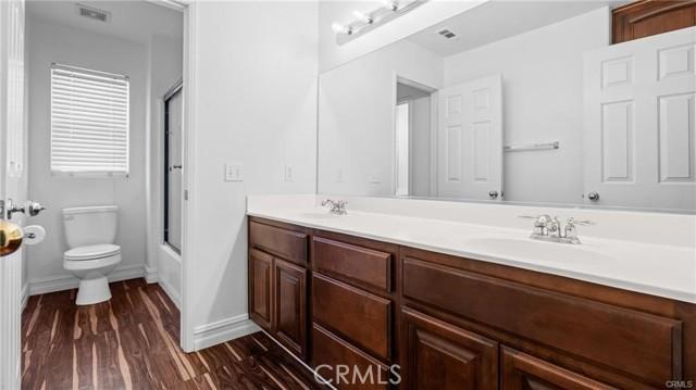 The expansive kitchen offers abundant cabinetry, a walk-in pantry, and brand-new quartz countertops, featuring a large center island ideal for meal preparation, entertaining, and everyday functionality. Downstairs offers a guest suite with full bath, formal living and dining rooms, and a large family room with fireplace. Upstairs includes a generous loft/office room, laundry room with storage, and spacious secondary bedrooms. The luxurious primary suite offers a walk-in closet, soaking tub, dual vanities, and separate shower. The private backyard includes a covered patio ready for outdoor enjoyment. This beautifully updated home offers fresh interior paint throughoutincluding the garage doors and brand new luxury vinyl flooring across the entire house. Enjoy a walkable lifestyle with parks, trails, and dog parks just steps away. Located within the highly rated CoronaNorco Unified School District. Best of allNO HOA.
