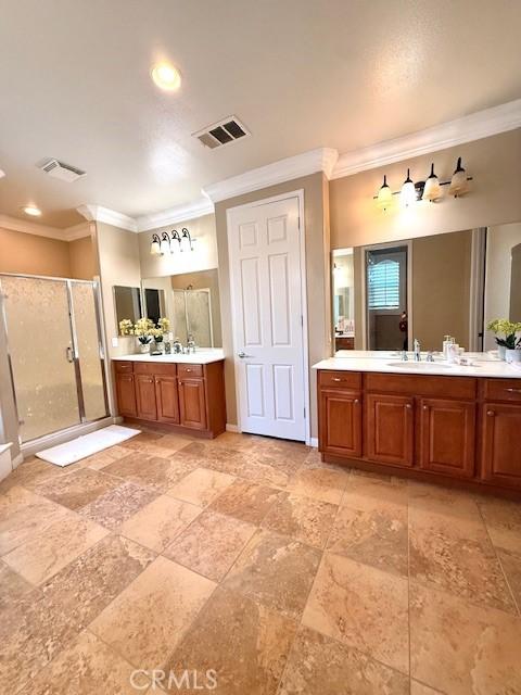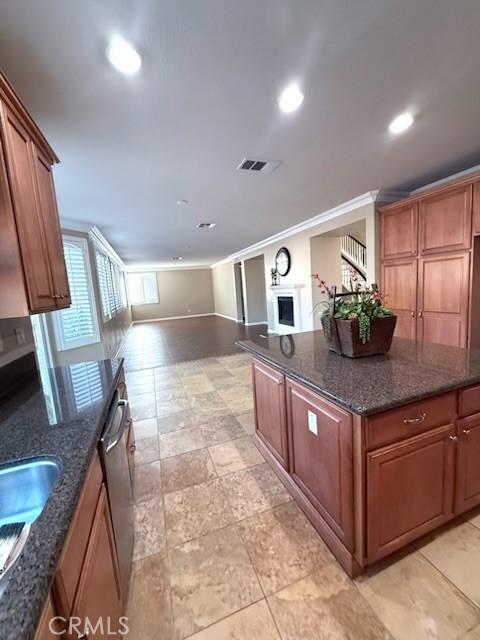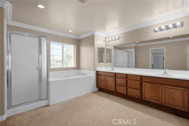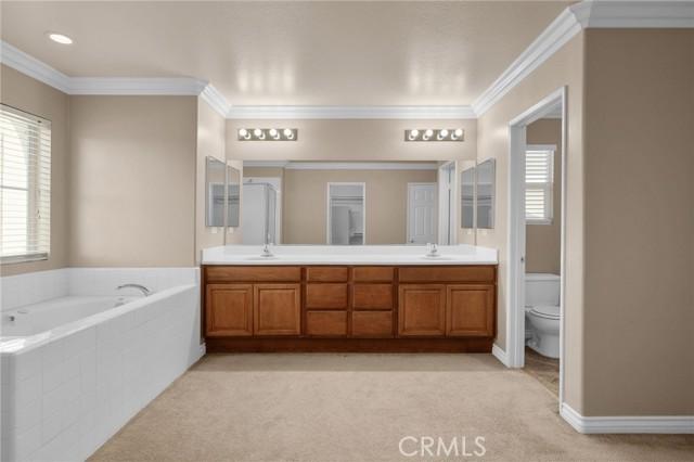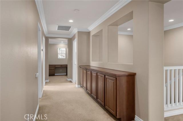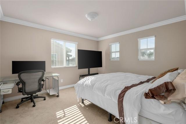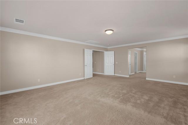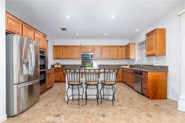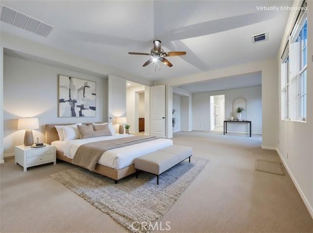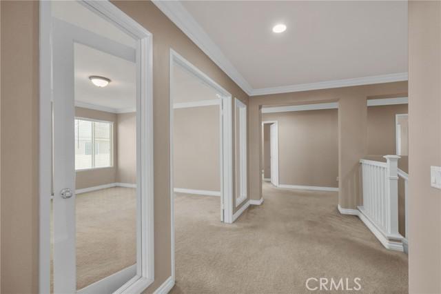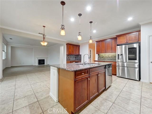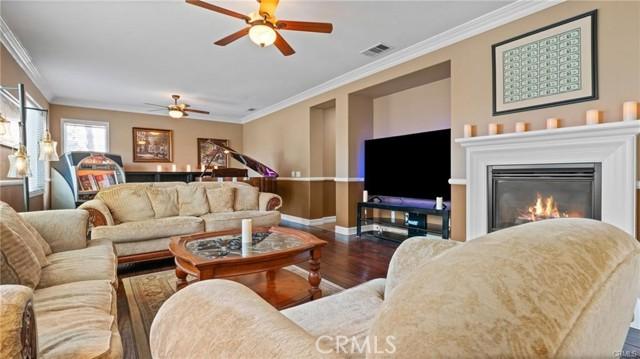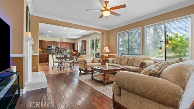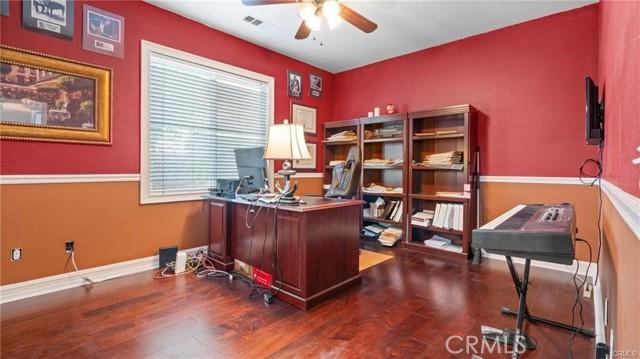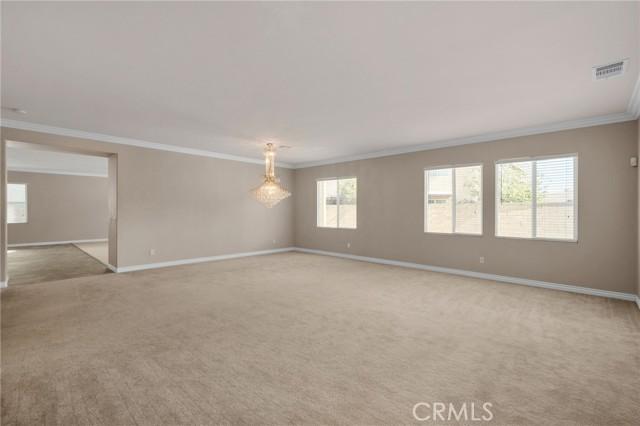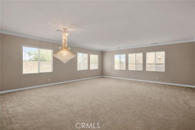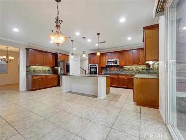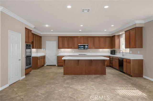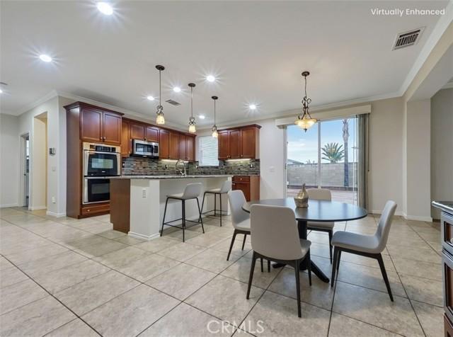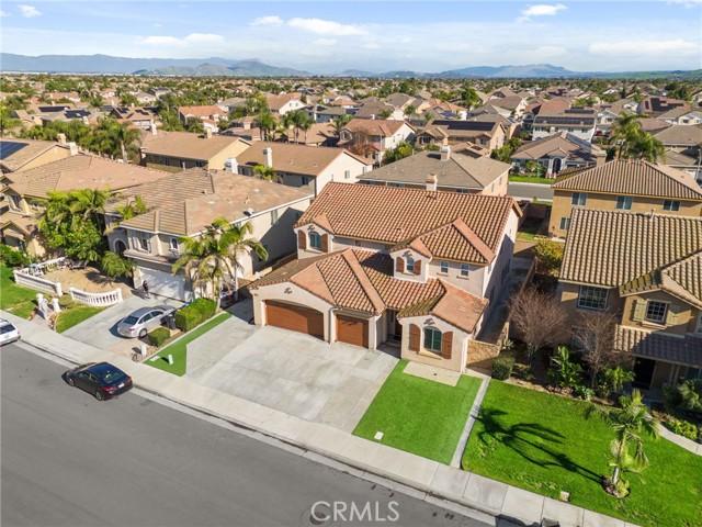 Discover the perfect balance of space, elegance, and functionality in this meticulously maintained residence located in one of Eastvales most desirable neighborhoods. This two story home offers 5 bedrooms with multiple office and bonus spaces on both levels, providing the potential to easily have a 7 bedroom layout, a three-car garage, ideal for large or multigenerational households, remote work, or flexible living needs. From the moment you enter, youre greeted by high ceilings, crown molding, recessed lighting, plantation shutters, and a custom imported Italian crystal chandelier, creating a refined and welcoming atmosphere. The open-concept layout seamlessly connects the formal living and dining rooms to a spacious family room with fireplace and media niche, perfect for entertaining or everyday living. The chefs kitchen features solid surface countertops, a large center island, built-in gas cooktop, double ovens, above-range microwave, dishwasher, walk-in pantry, and a bright breakfast nook that opens to the family room. The first floor includes a full bedroom and bathroom, ideal for guests or multigenerational living, along with a private office or study with glass French doors that can also function as a flex room or additional bedroom, plus a half bath for guests. Upstairs truly has it all, highlighted by the luxurious primary suite, featuring double-door entry, an oversized en-suite bathroom with dual vanities and jacuzzi tub, a spacious walk-in closet, and a private balcony with mountain views. The upper level also includes large secondary bedrooms, a built-in study/office niche, and a huge enclosed office or bonus room with French doors, offering flexibility for work, play, or additional bedrooms. A dedicated upstairs laundry room with cabinetry and sink adds everyday convenience. Outside, enjoy a private backyard retreat complete with a covered patio, concrete hardscape, and lowmaintenance landscaping, while the front yard features artificial turf for easy upkeep. Additional highlights include central HVAC and ample storage. Perfectly positioned near parks, shopping, top-rated schools, and commuter routes, this exceptional home offers size, versatility, views, and location, a rare opportunity in the heart of Eastvale. Walking distance to James C. Huber Park, award-winning Eastvale schools, and minutes from major shopping destinations including the new Walmart Supercenter, Sprouts, and surrounding retail centers. No HOA and no solar