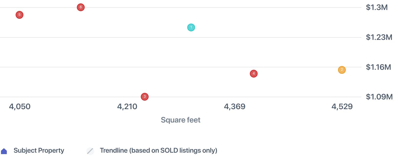 Comparable homes sold for an average of $286 / sq. ft. Many factors such as location, use of space, condition, quality, and amenities determine the market value per square foot, so reviewing each comp carefully is important.