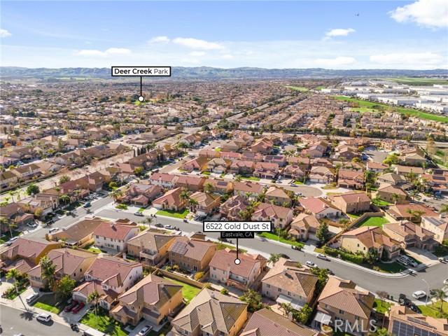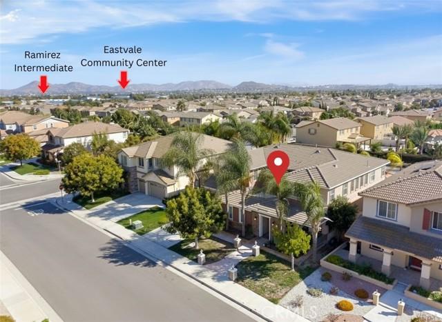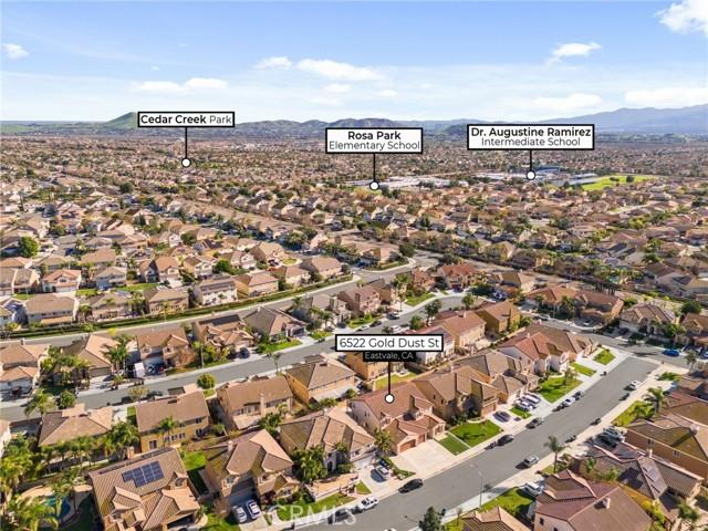 The backyard offers a concrete patio and and planters ready for your design ideas. The location is perfect with Rosa Parks Elementary and Ramirez Intermediate walking distance as well as the Eastvale Community Center. Shopping and parks also nearby. This home offers exceptional space, comfort, and thoughtful design throughout.