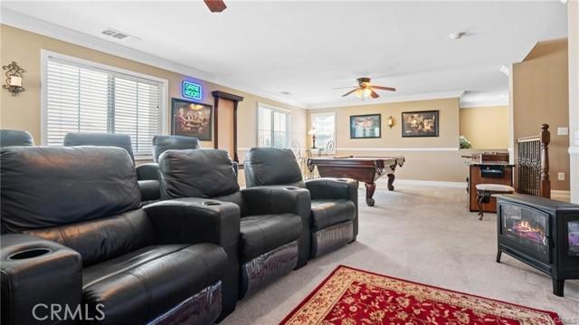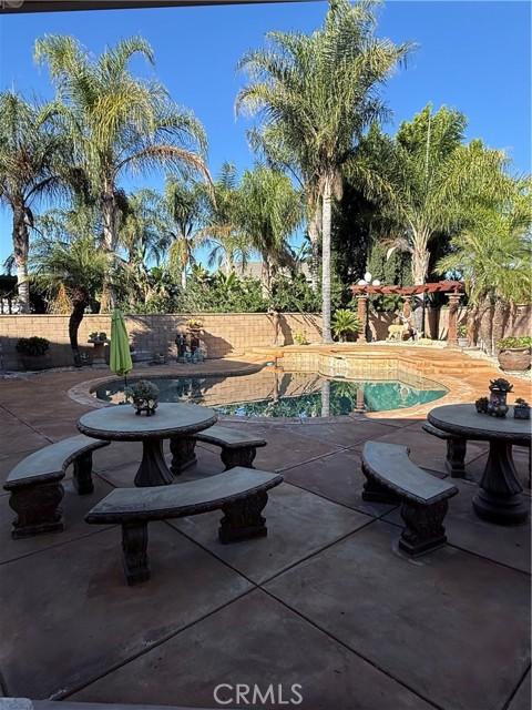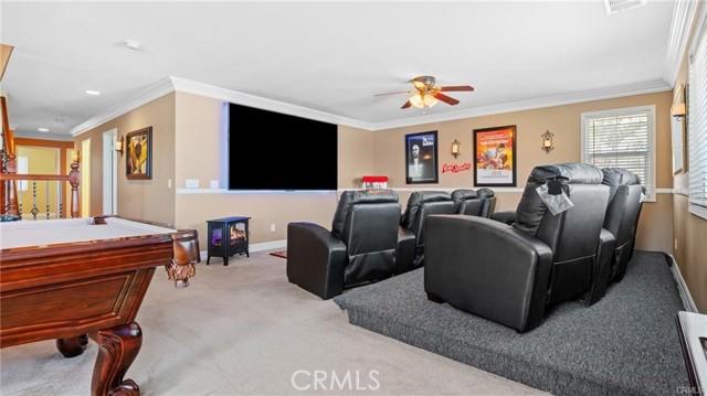 Beautifully upgraded 4050 sq ft home located in a quiet cul-de-sac, with no HOA, and in a hiighly rated school district of Eastvale. This spacious home offers 5 bedrooms, 4.5 bathrooms, a loft, a bonus room converted into a home theater (included). The primary bedroom features a large walk-in closet, a bathtub, shower and dual sinks, with additional vanity area. Interior highlights include high ceilings, recessed lighting, crown moldings, custom paint, plantation shutters, tile flooring on the first floor, and laminate wood flooring upstairs, the 3 car garage has pre-wired for 2 EV charging stations (wall units not included). The resort-style backyard, is ideal for entertaining family & friends year-round. Enjoy the sparkling Pool & Spa with pebble tech flooring, abundant outdoor seatings, a BBQ Island, a small Koi Pond (currently no in use), gas outdoor Fire Pit, your private oasis at home. Conveniently located, walking distance from parks, shopping centers, schools, and minutes to major freeways (60, 15, 71, 91). This exceptional property offers luxury, comfort and prime location all in one. Turn the key and start the New Year in a home that's ready now to welcome its new owner Homes like this don't last, come and see before its gone.