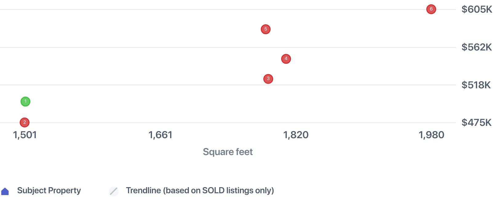 Comparable homes sold for an average of $309 / sq. ft. Many factors such as location, use of space, condition, quality, and amenities determine the market value per square foot, so reviewing each comp carefully is important.