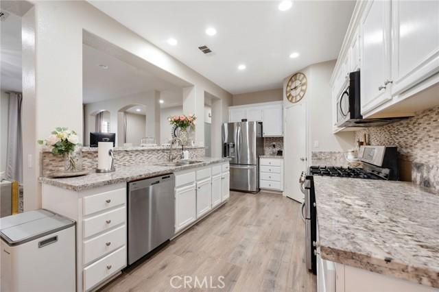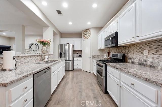 *HUGE PRICE IMPROVEMENT- OWNER HAS MOVED OUT AND THIS HOME IS MOVE-IN READY AND FAST CLOSING AVAILABLE* Welcome to your new home in the highly sought-after Lake Hills community of Riverside! This beautifully maintained 4-bedroom, 2.5-bathroom residence offers 2,217 sq ft of comfortable living space, thoughtfully updated for modern lifestyles. Step inside to find laminate flooring, quartz countertops, a stylish backsplash, and newer recessed lighting in the kitchen. Fresh interior paint (less than 5 years old) and upgraded lighting fixtures throughout the home create a bright, modern feel- where comfort meets luxury! Additional updates include upgraded bathroom countertops, a new downstairs bathroom vanity, new lighting around the exterior of the home (driveway, porch and backyard) and an epoxied garage floor for a clean, polished finish.