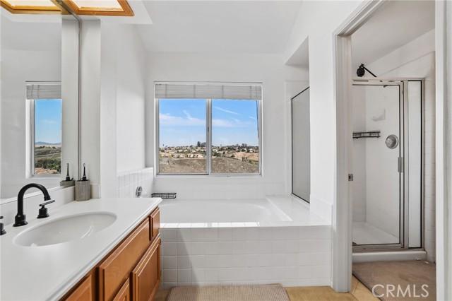 owner. From this charming home, enjoy breathtaking views of the surrounding hills with 7 parks within walking distance of the property. Inside, a spacious living-dining area features high ceilings and an elegant staircase. The open kitchen-family room is perfect for entertaining, with an upgraded kitchen boasting a gas cooktop, microwave, double ovens, beautiful granite countertops, and classic white cabinets, plus a pantry for your culinary needs. The family room, with its cozy fireplace and ceiling fan, invites relaxation. Sliding glass doors lead to your backyard oasis. On the first floor, there's also a welcoming bedroom, full bathroom, and laundry room. Upstairs, the spacious primary bedroom offers stunning 180-degree views, dual closets, and a ceiling fan. The primary en-suite bath features dual sinks, a soaking tub, and a walkin shower. Two additional bedrooms and a full bathroom complete the second floor. The A/C and furnace were updated in June 2022 with a Lennox unit. Lastly, the three-car garage includes storage cabinets and shelving, and you can enjoy orange and lemon trees in your backyard, all on a lovely cul-de-sac street. This property exudes pride of ownership and warmth!