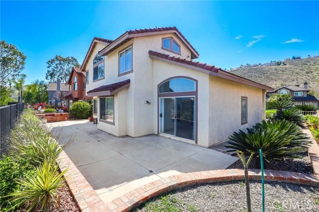 This Beautiful 2-story Home located in "Lake Hills" Community and on a very quiet near end Cul-De-Sac Street with more privacy. Home offers 4 Bedrooms [1 bedroom downstairs] & 3 Full Bathrooms [1 full bathroom downstairs]. Downstairs, you will find Living Room with Vaulted Ceiling, Formal Dining Room, Family Room with Fireplace and Plantation Shutters, and the Large Kitchen upgraded with KitchenAid Appliances (Cooktop, Oven and Microwave), Custom Tile Countertops and Breakfast Nook with Custom Window Covers. Upstairs, there are a Large Master Suite with Vaulted Ceiling and beautiful views, Remodeled Master Bathroom with Newer Cabinets, Granite Counters, Custom Tile on bathtub and Shower, Laminate Floor, Walk-in Closet with Organizers and another large closet with Mirror Doors, Special Tint on Windows, and THE AMAZING VIEW. Two other Nice Sized junior Bedrooms shared a full Bathroom, and a Huge Bonus Room which can be used as a 5th Bedroom. Additional Features include Ceiling Fans with Remotes throughout, Newer Central Air Conditioner and Heater and Newer Glass Sliding Door leading to the low maintenance backyard with Cover Patios. 3-Car Garage with direct interior access. Lake Hills Elementary School and Community Parks are nearby. Close to Shopping Centers and Metrolink Station. Convenient Transportation and Easy Access to Freeways 91, 15 and 71.