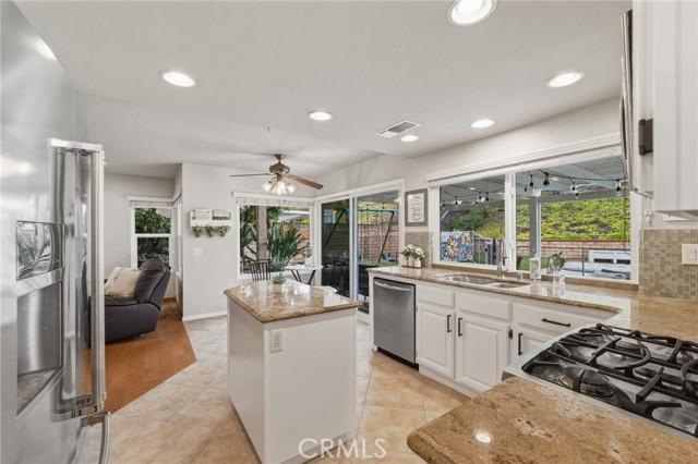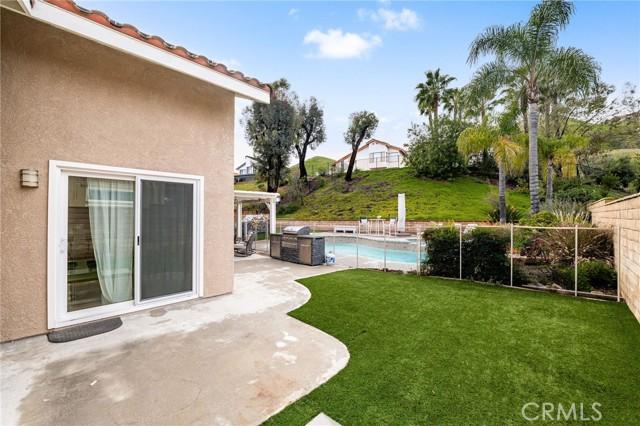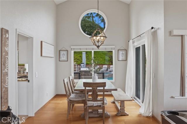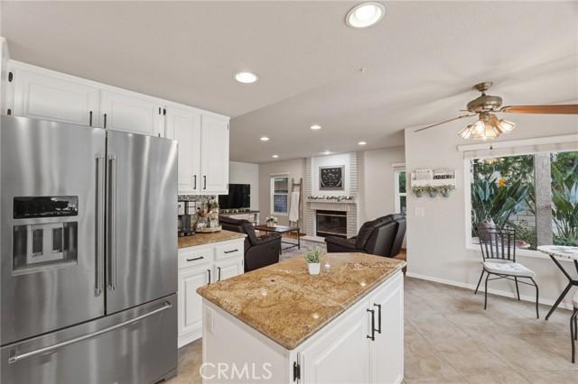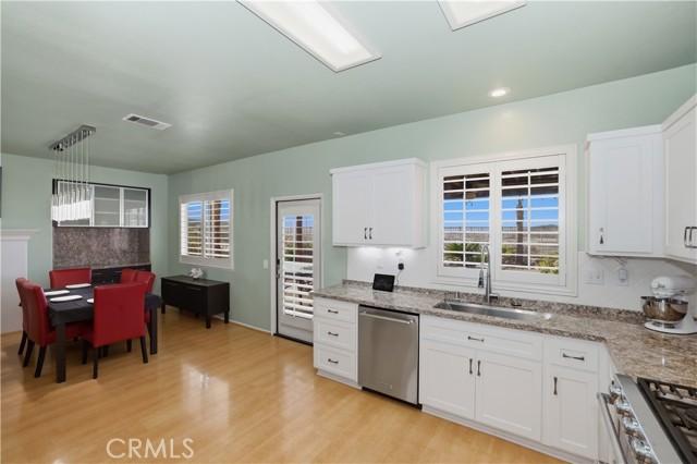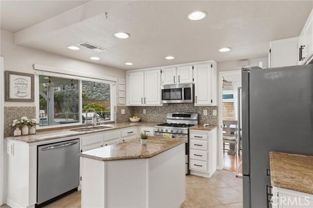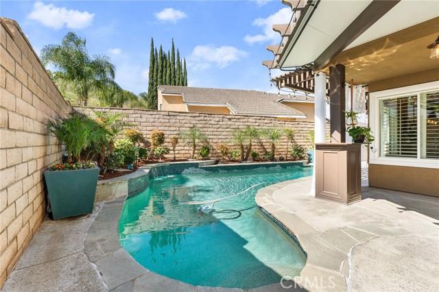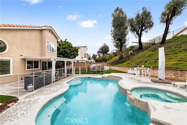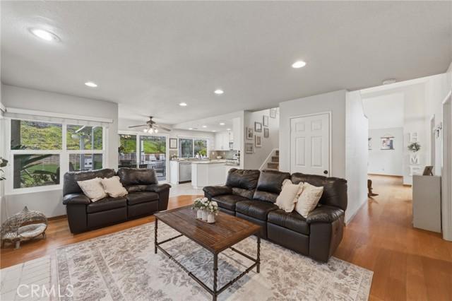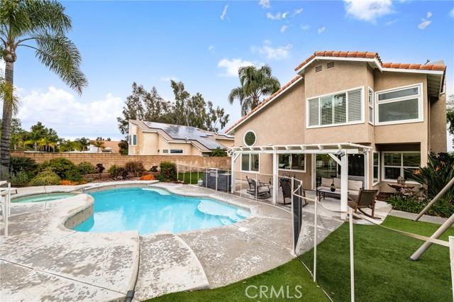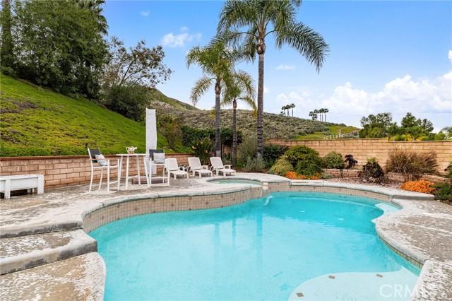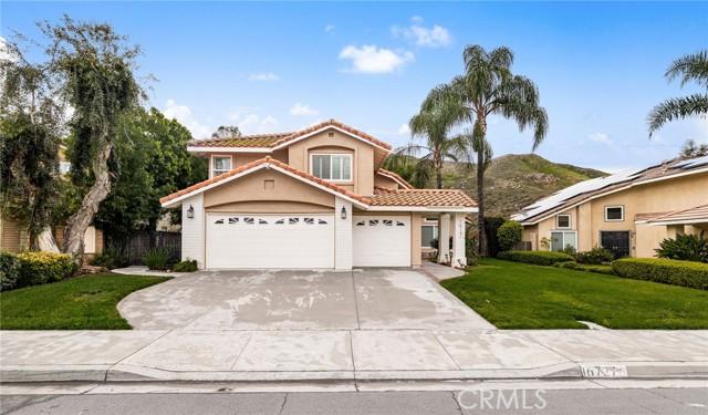 Beautiful Lake Hills Home featuring open floor plan with formal living and dining rooms plus a spacious family room with fireplace. Dual-pane windows and sliding glass doors provide abundant natural light, while central A/C and a whole house fan deliver energy-efficient comfort. The updated kitchen features white cabinetry, granite countertops, a center island, and stainless steel appliances. The primary suite includes dual sinks, a walk-in closet, and an oversized walk-in shower with dual shower heads and frameless glass enclosure.Enjoy outdoor living in the expansive backyard with a solar-heated pool and spa and generous patio space ideal for entertaining. Additional highlights include a 3-car garage with EV charging station. Lake Hills community offers beautiful hill and mountain views, parks, walking trails, playgrounds, picnic areas and Lake Hills Elementary school. Low taxes and low HOA. Close to shopping, the 91 Metrolink Station, and easy access to the 91 & 15 freeways. A must-see home offering comfort, upgrades, and an exceptional location.