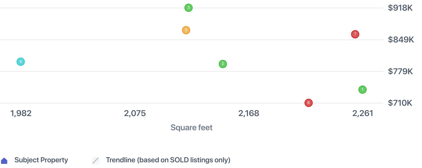 Comparable homes sold for an average of $351 / sq. ft. Many factors such as location, use of space, condition, quality, and amenities determine the market value per square foot, so reviewing each comp carefully is important.