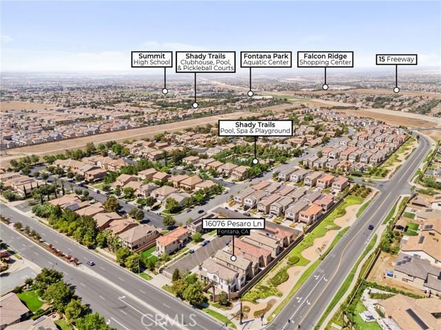 Living in Shady Trails means enjoying resort-style amenities behind the gates including multiple pools and spas, fully equipped fitness centers, pickleball, tennis, and basketball courts, a putting green, the 15,000 sq ft Parkhouse clubhouse with movie theater, game room, business center, playgrounds, and scenic pathways. Plus, youre just minutes from Sierra Lakes Golf Club, Victoria Gardens shopping and dining, top-rated schools, and have easy access to major freeways for commuting or weekend getaways.