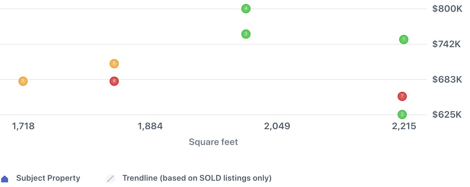 Comparable homes sold for an average of $333 / sq. ft. Many factors such as location, use of space, condition, quality, and amenities determine the market value per square foot, so reviewing each comp carefully is important.