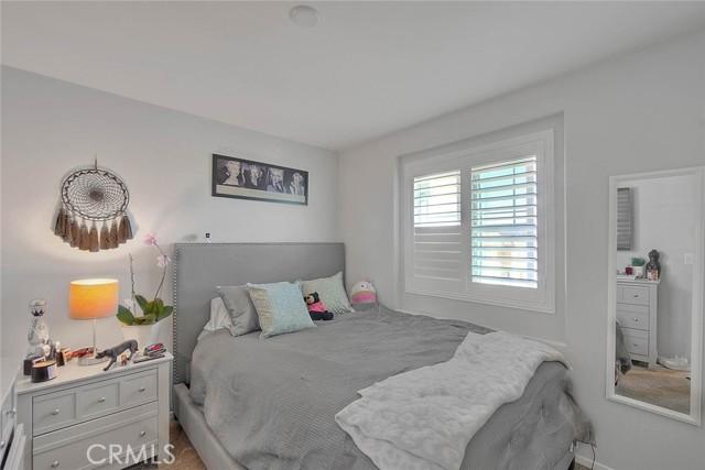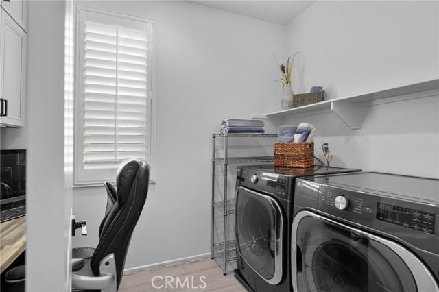The spacious primary suite features a dual-sink vanity, large soaking tub, walk-in shower, and an oversized walk-in closet. Two additional bedrooms, a shared hall bath with dual-sink vanity, a generous loft, and an upper-level laundry room with custom built-in workstation and storage complete the layout. Plantation shutters are found throughout, and comfort is enhanced by dual-zoned heating and air. A solar lease will be assumed by the buyer
