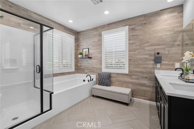 Bathroom Features: Bathtub, Shower, Shower in Tub, Double Sinks in Primary Bath, Exhaust fan(s)