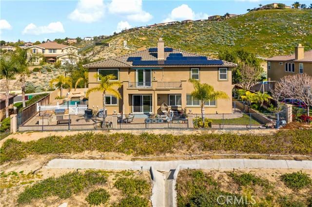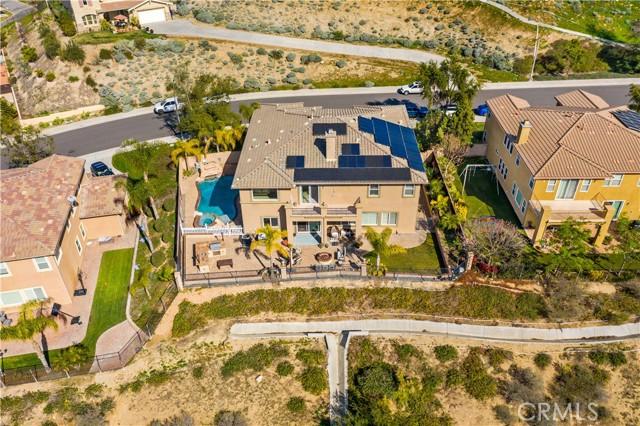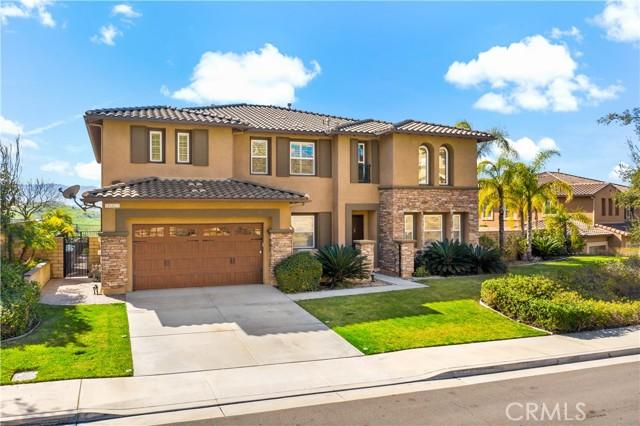 Absolutely Stunning Pool Home with Spectacular Views in Lake Hills Reserve! Welcome to your dream home in the highly desirable Lake Hills community, where luxury meets functionality! This exquisite property features completely paid solar and an array of upgrades that will leave you in awe. Spacious Living With 4,895 sq ft of elegance on a 16,553 sq ft lot, this home is designed for comfort and entertainment. Grand Entry & High Ceilings, Gorgeous Interiors, Enjoy a stunning living room complete with a double-sided fireplace that flows seamlessly into a formal dining area adorned with a beautiful stacked stone accent wall. Exquisite hardwood flooring and elegant crown molding throughout add to the charm. Gourmet Kitchen featuring granite countertops, a large island, ample cabinets, a butler's pantry, stainless steel appliances, and double ovens, all overlooking the cozy family room with a built-in entertainment center. The home includes a full bedroom and bathroom on the lower level. Upstairs, discover a grand loft, a spacious Jack & Jill bedroom setup, and a rear ensuite bedroom. The master suite is a true retreat with a private patio, cozy fireplace, massive two walk-in closets, and a spa-like bath featuring a separate tub and shower, along with a built-in vanity. Outdoor Oasis, Step outside to your entertainers paradise! A stunning pool and spa with a flowing waterfall, built-in BBQ, fire pit, and breathtaking mountain views await you in the manicured backyard. Living in Lake Hills Reserve means enjoying the tranquility of a mountaintop locale away from city life while being close to Riverside's cultural and educational amenities, along with shopping attractions close by. The guard-patrolled community offers exclusive access to a private residents' club, complete with a swimming pool, playground, park, open-air fireplace pavilion, and is in proximity to the highly rated Lake Hills Elementary School. Dont miss your chance to own this luxurious sanctuary with an unbeatable lifestyle! Schedule your private showing today and experience the splendor for yourself!