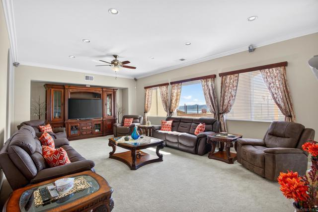 Perched on a premium half-acre lot in the highly desirable Lake Hills community, Lake Mathews view estate offers approximately 4,576 square feet of refined living. The residence showcases expansive interiors highlighted by soaring ceilings, abundant natural light, and multiple fireplaces that create warmth and architectural drama. The spacious chefs kitchen with granite countertops and rich cabinetry flows seamlessly into generous living and family rooms designed for entertaining. A luxurious primary suite features a private retreat area and balcony perfectly positioned to capture sweeping panoramic views of rolling hills and the lake. Two walk in closets, spa tub, large shower, makeup table and separate sinks. Additional highlights include travertine flooring, loft with Billiard table, central vacuum system, and a 3-car tandem garage with storage shelves, EV charger with a Tesla Battery, 38 (owned) solar panels means no electrical bills, zoned A/C units (installed a year ago), home intercom communication system, smart home features include temperature control, cameras and security. 4 TV's included with surround sound system with amplifier. Outdoors, extensive hardscaping and elevated vantage points create an ideal setting to enjoy spectacular sunsets and tranquil hillside surroundings. Multiple fruit trees include: lemon, apple, 2 fig, kumquat, pomegranate, mulberry sweet lemon, loquat, nectarine, persimmon, & avocado. This is an exceptional opportunity to own a view property in one of Riversides most sought-after neighborhoods.