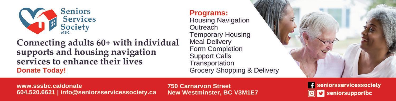 604.519.1064 www.centuryhouseassociation.com/service-group/peer-support-program Provides free peer counselling programs for New West aging adults and seniors, helping with life transitions, bereavement, loss, loneliness, isolation, health, and aging concerns. Volunteers alwayswelcome.