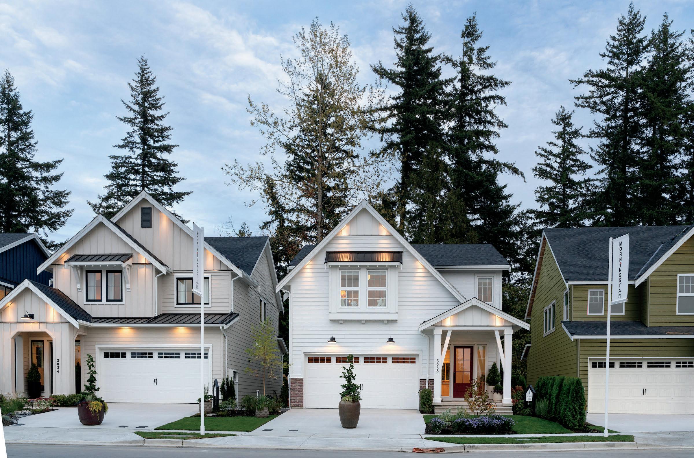 “One of the iconic elements is the lower level is often brick and the upper level a separate material,” she says. The deck across the front usually is part of that split.