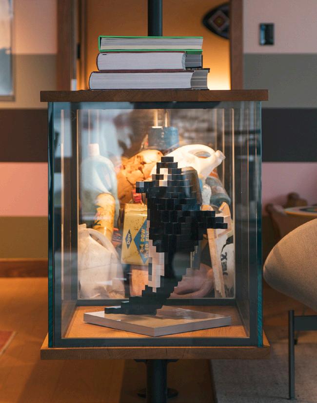 These days, his artwork takes centre stage, which comes in a variety of forms. But many will recognize one piece in particular. The now-iconic voxelated killer whale leaping next to the city’s convention centre is probably his bestknown work.