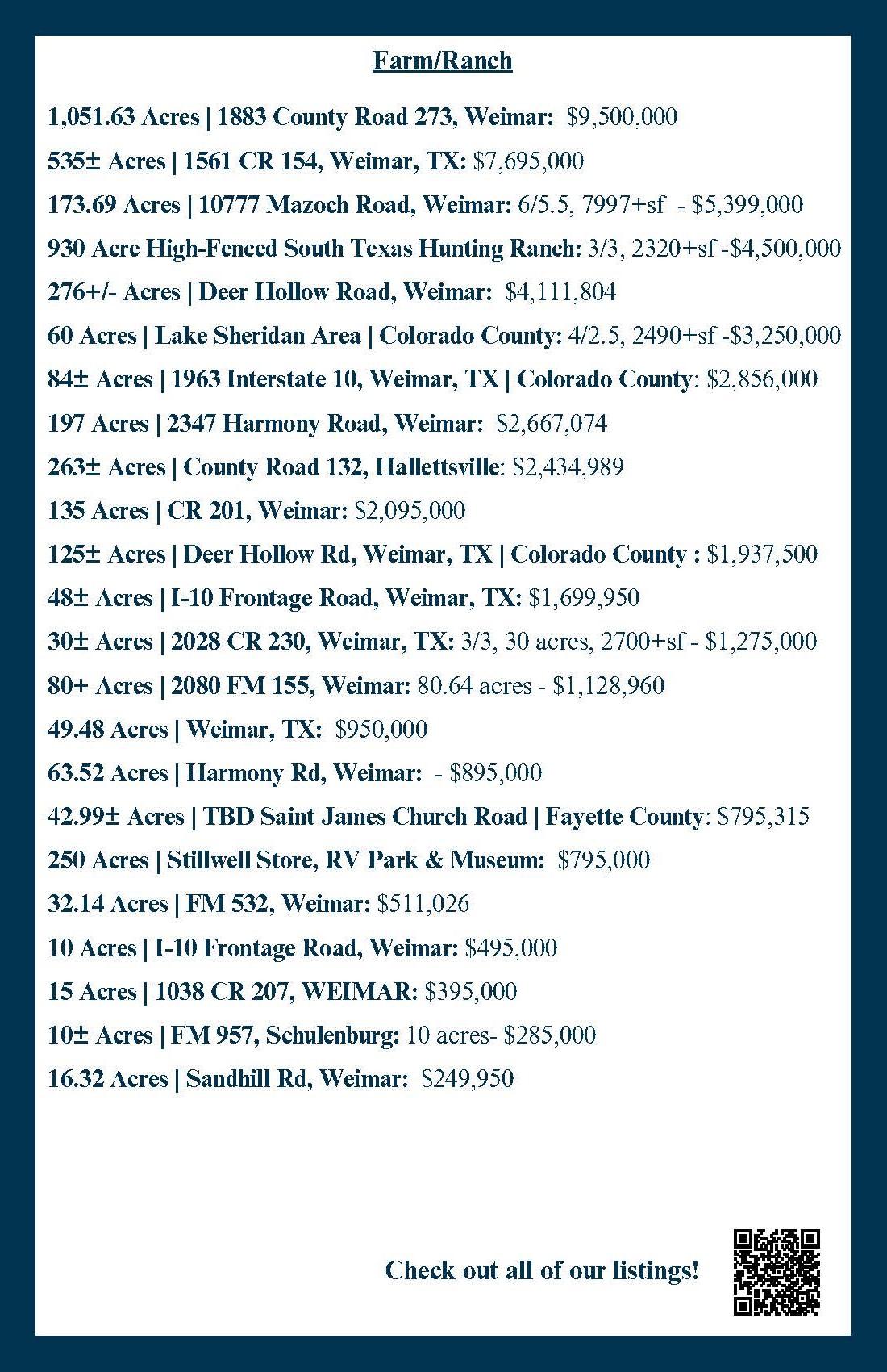 Showcasing the Best of Colorado, Fayette, and Lavaca Counties! Discover our exceptional properties and explore the heart of South Central Texas in our exclusive real estate guide. Featuring standout listings, this guide is more than just a resource—it’s a powerful marketing tool. At Tri-County Realty, we specialize in marketing that moves your property. Thinking of selling? Let us feature your listing in our next edition and share your property with a wide audience through our trusted, results-driven approach. Learn more about our team in the “About Us” section and see why sellers choose Tri-County Realty.