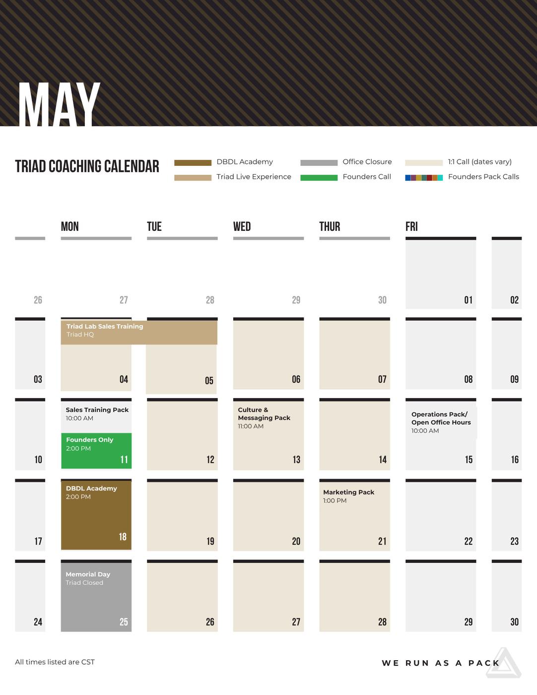 These meetings are designed to keep our entire team aligned and connected by bringing all departments together to share important updates The Culture Team will create an engaging environment with music, treats, and occasional guest speakers to set the tone Leadership will provide key insights from their areas, ensuring that everyone has visibility into what is happening across the business This dedicated time is focused on building momentum, learning, growing, and strengthening our connections as a team so that we can continue to support at the highest level.