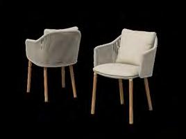seat’s structure, while the weave of the round fiber backrest provides embracing comfort. Delcourt's approach resembles a sculptor’s, perfectly blending form and function to create a timeless refined design.