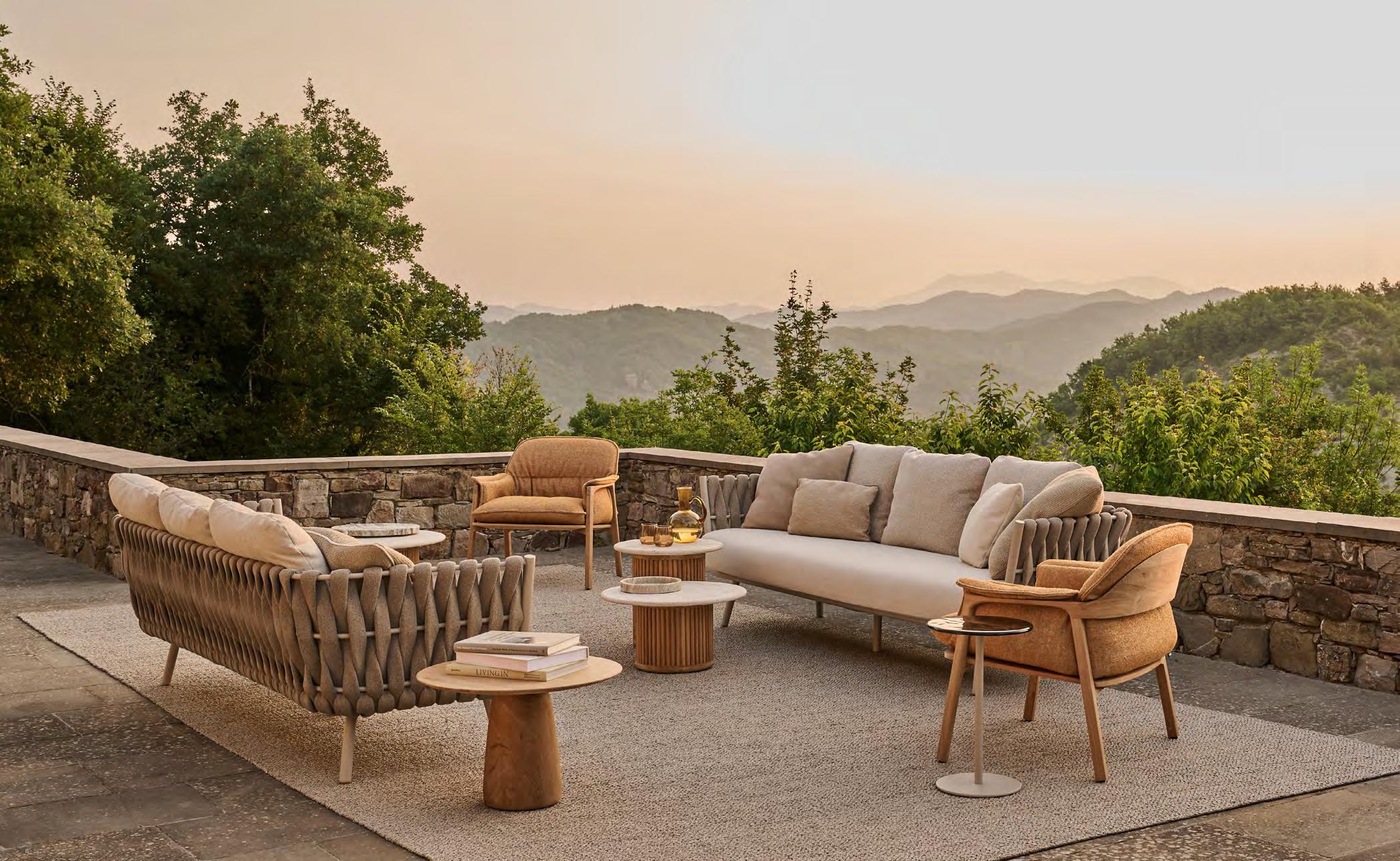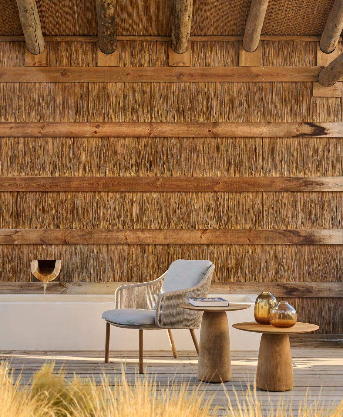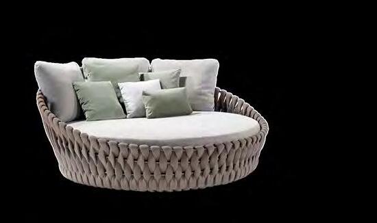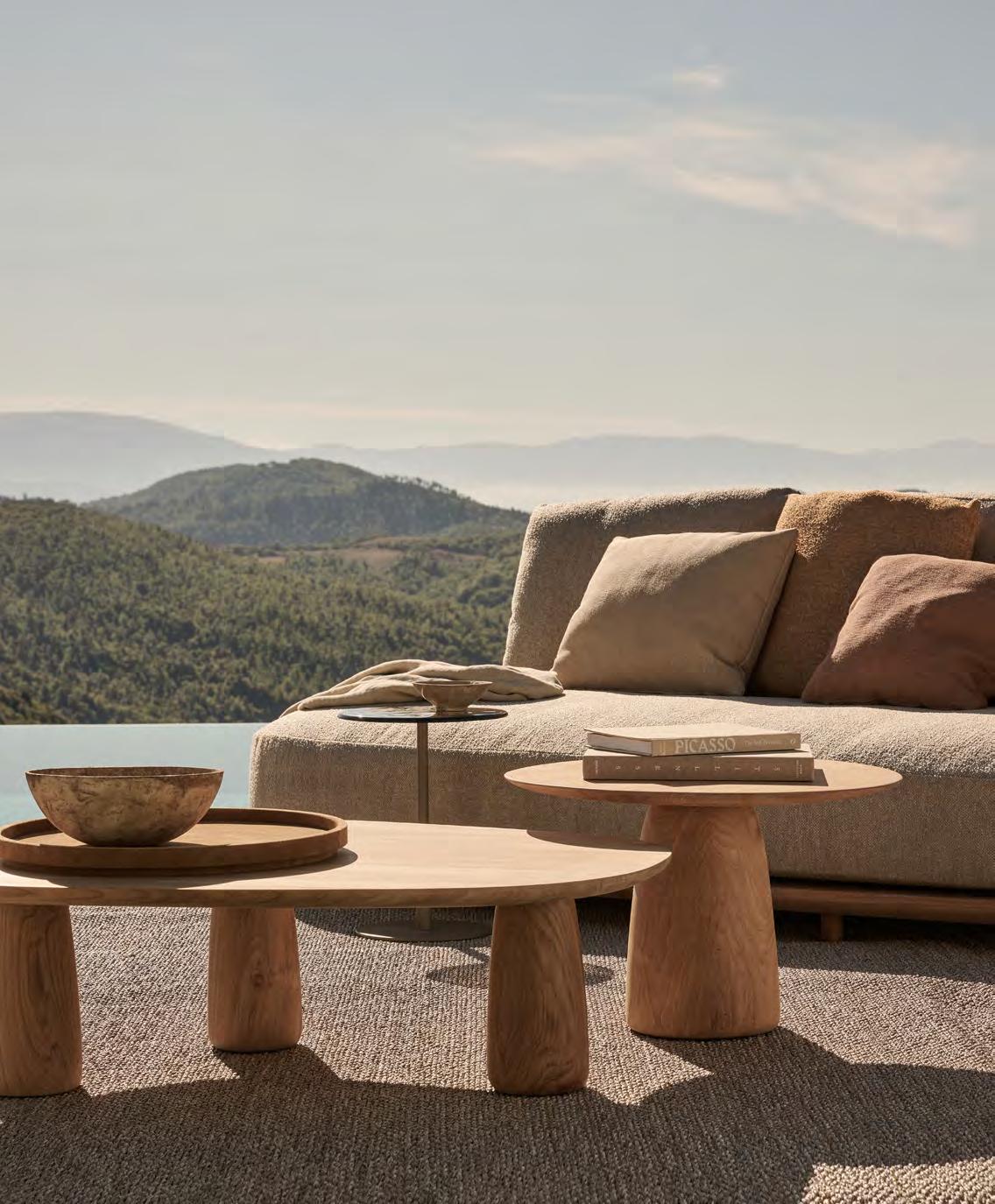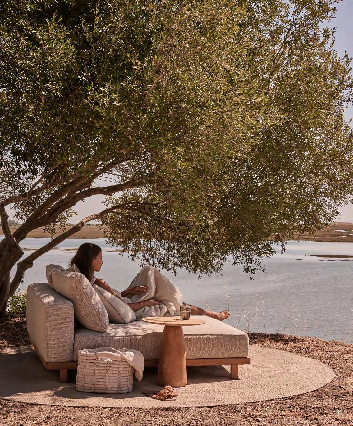 With its luxurious three-dimensional weave and warm, natural tones, the Shindi rug collection brings tactile richness and quiet sophistication to any outdoor space. Soft underfoot yet remarkably durable, Shindi is crafted from solution-dyed PVCcoated polyester, ensuring lasting resistance to sun, rain, and mildew. The expanded range now includes new round sizes, offering greater freedom in layout and design. P.