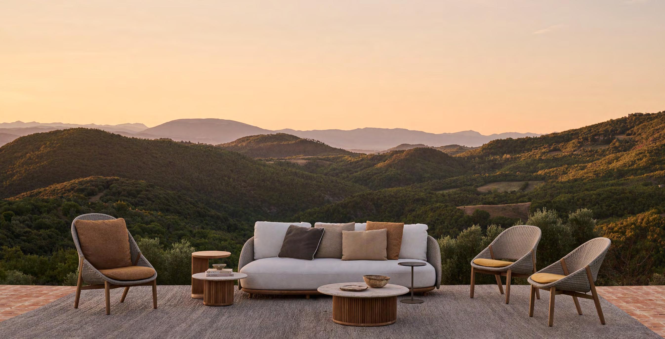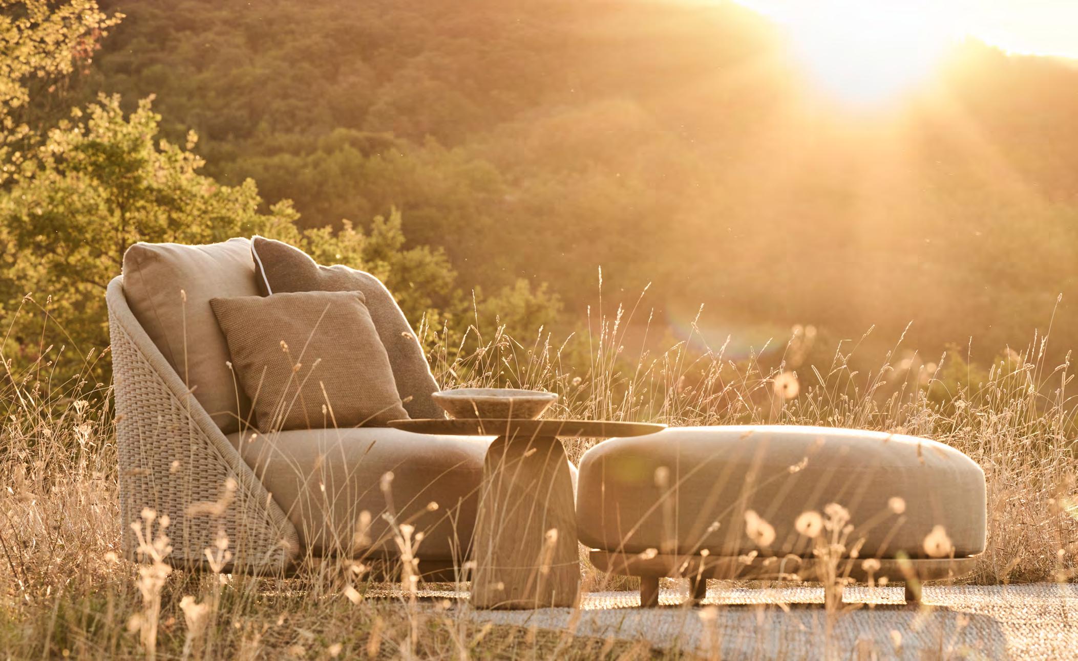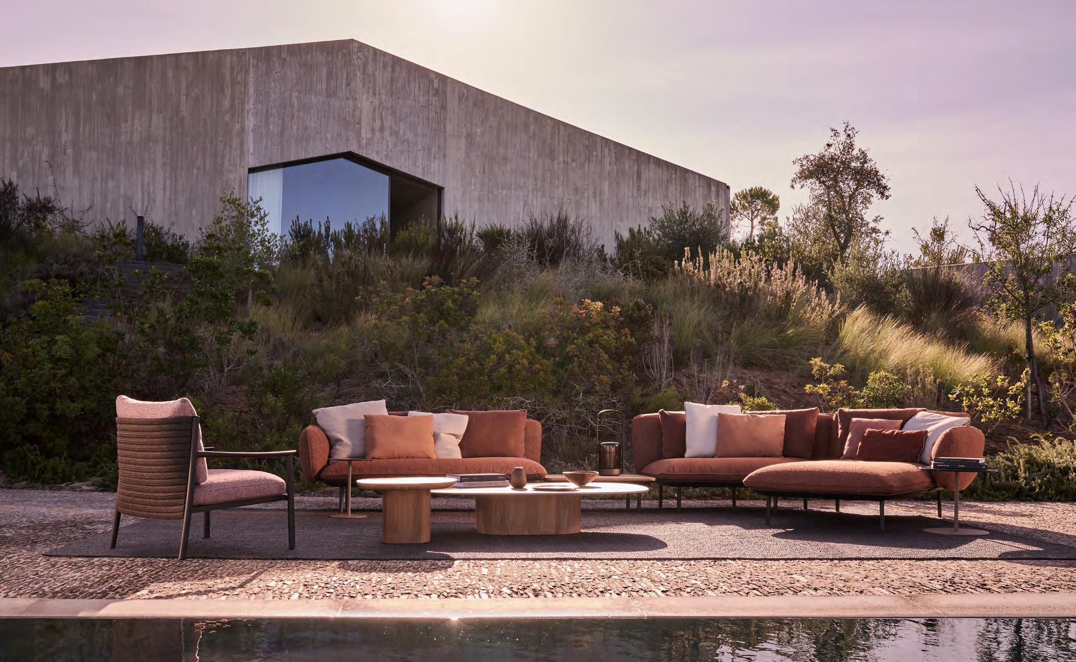 Elio captures the essence of outdoor livig. Inviting chairs, sofas and daybeds with elegant profiles and graceful curves evoke the serene beauty of water-smoothed pebbles.