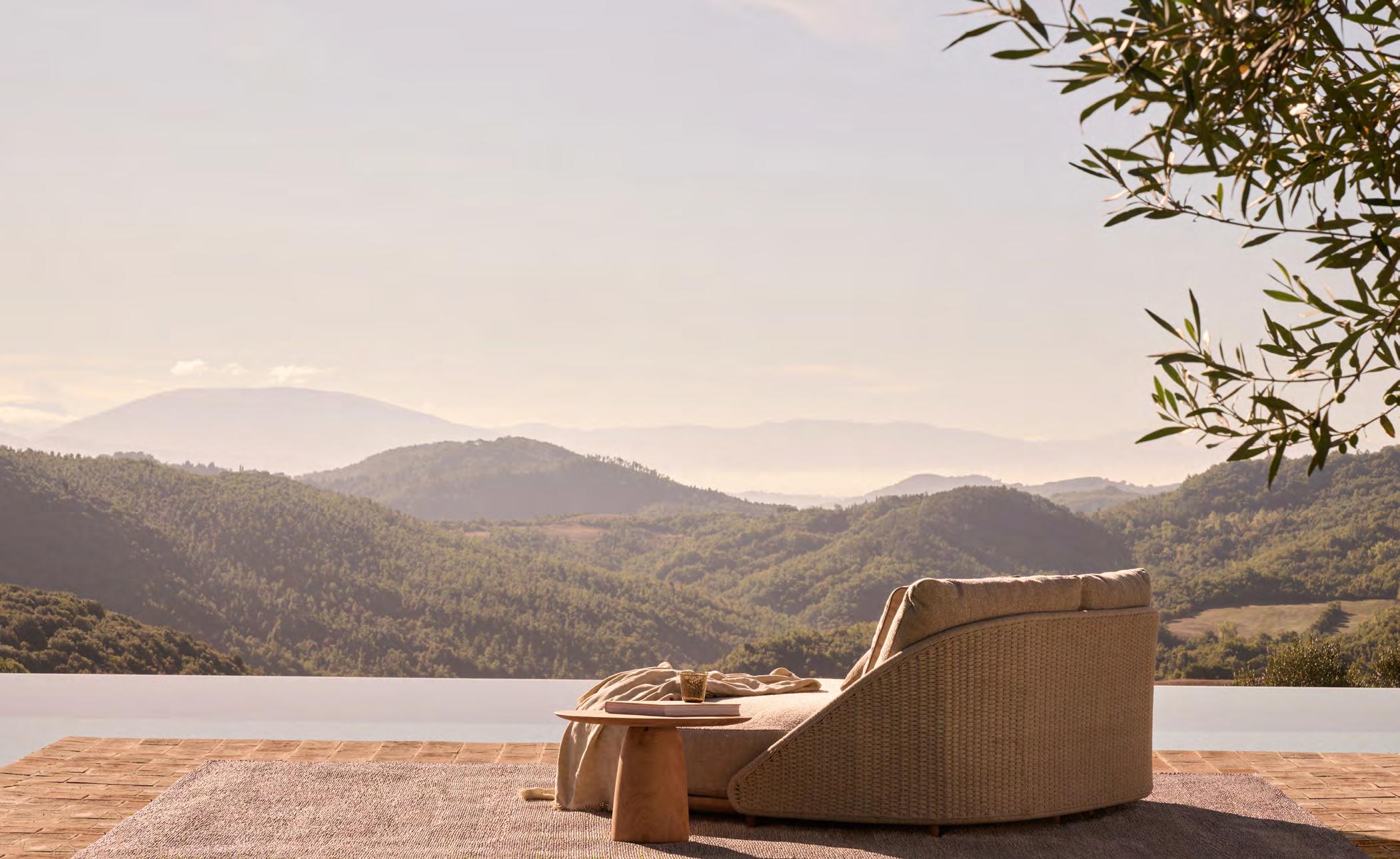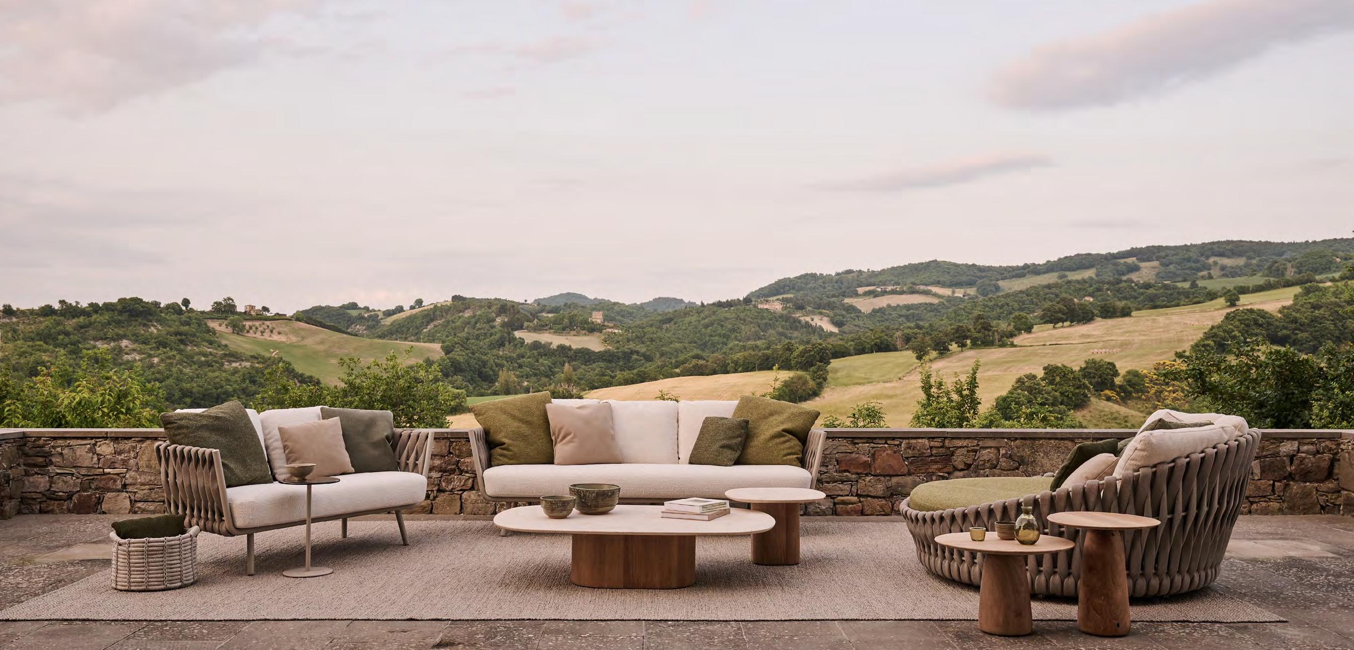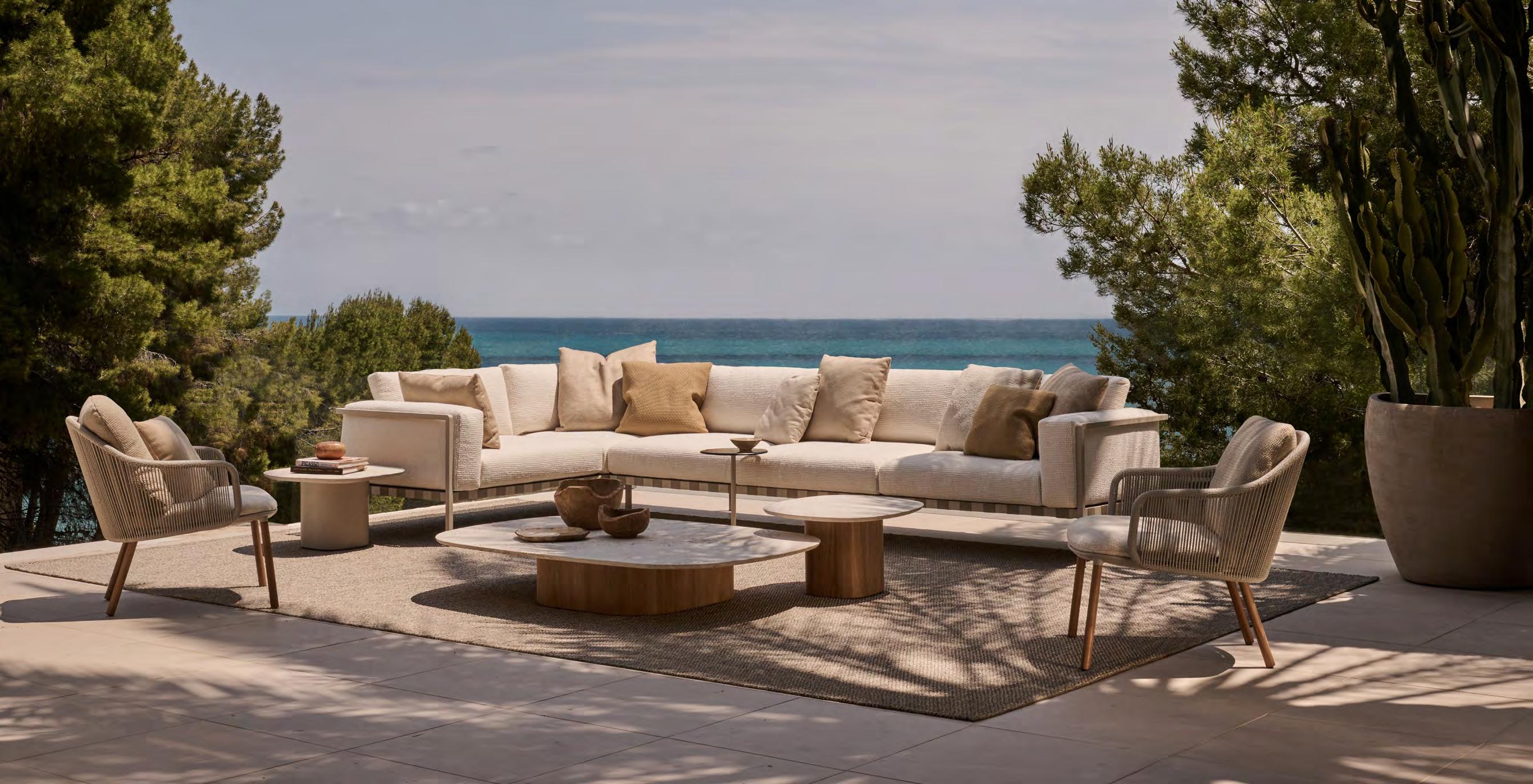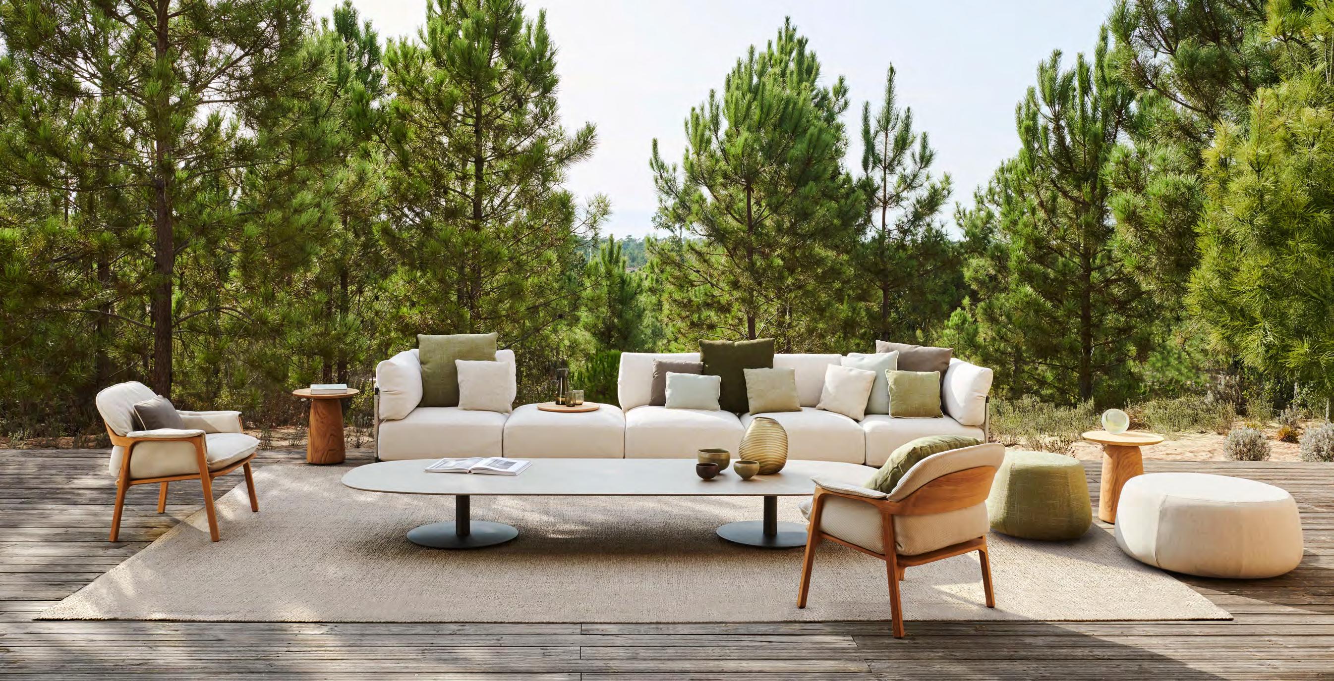 Elio captures the essence of outdoor livig. Inviting chairs, sofas and daybeds with elegant profiles and graceful curves evoke the serene beauty of water-smoothed pebbles.