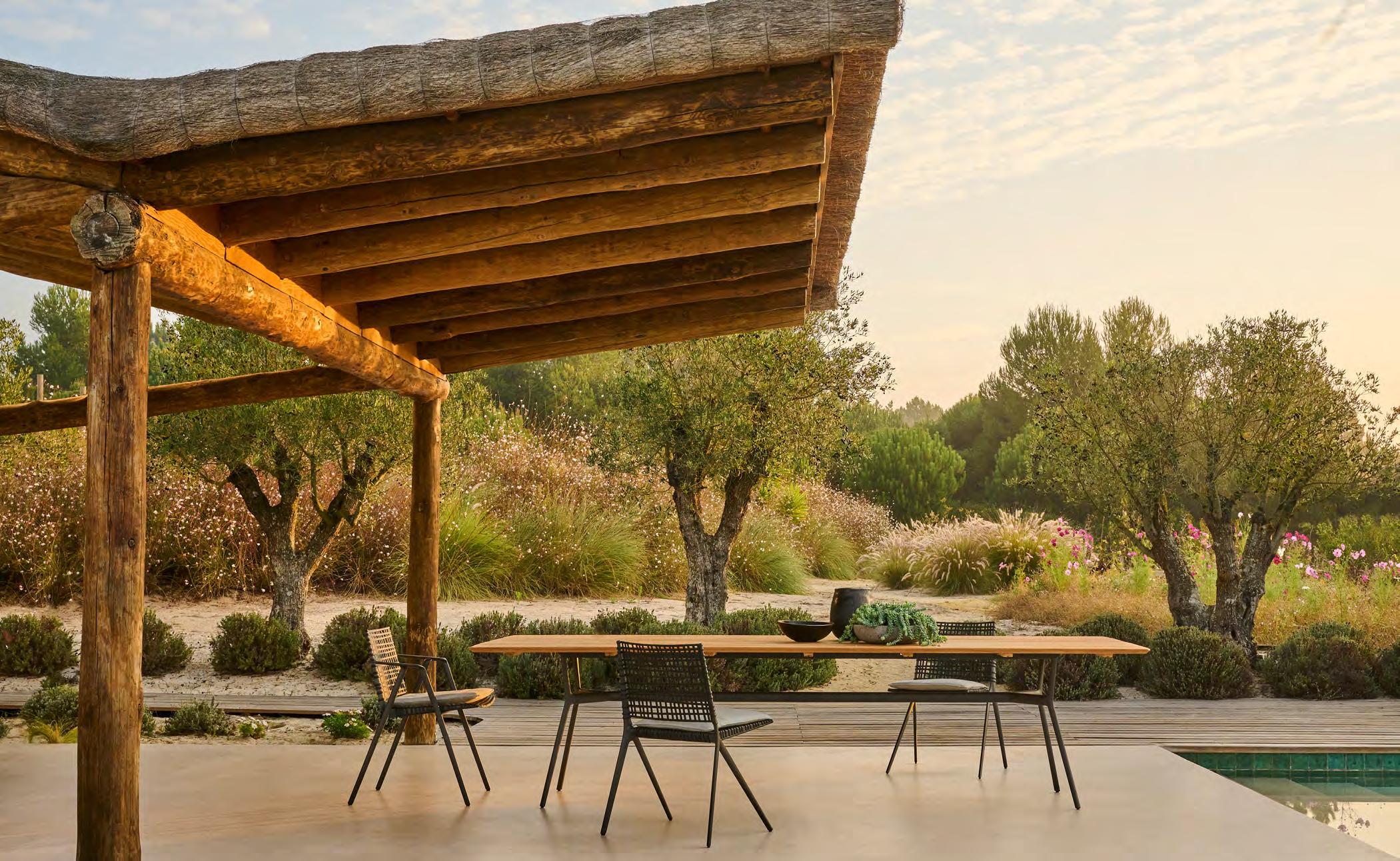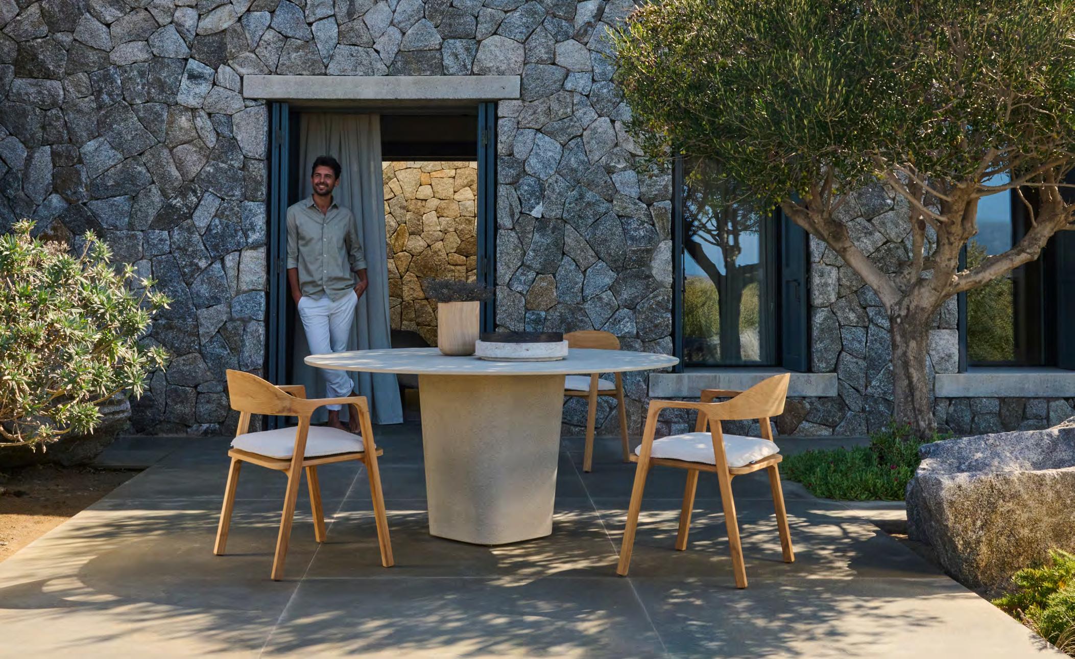 Blending the beauty and durability of teak with the sophisticated charm of woven Canax® sling seats, Amanu elevates outdoor living.
